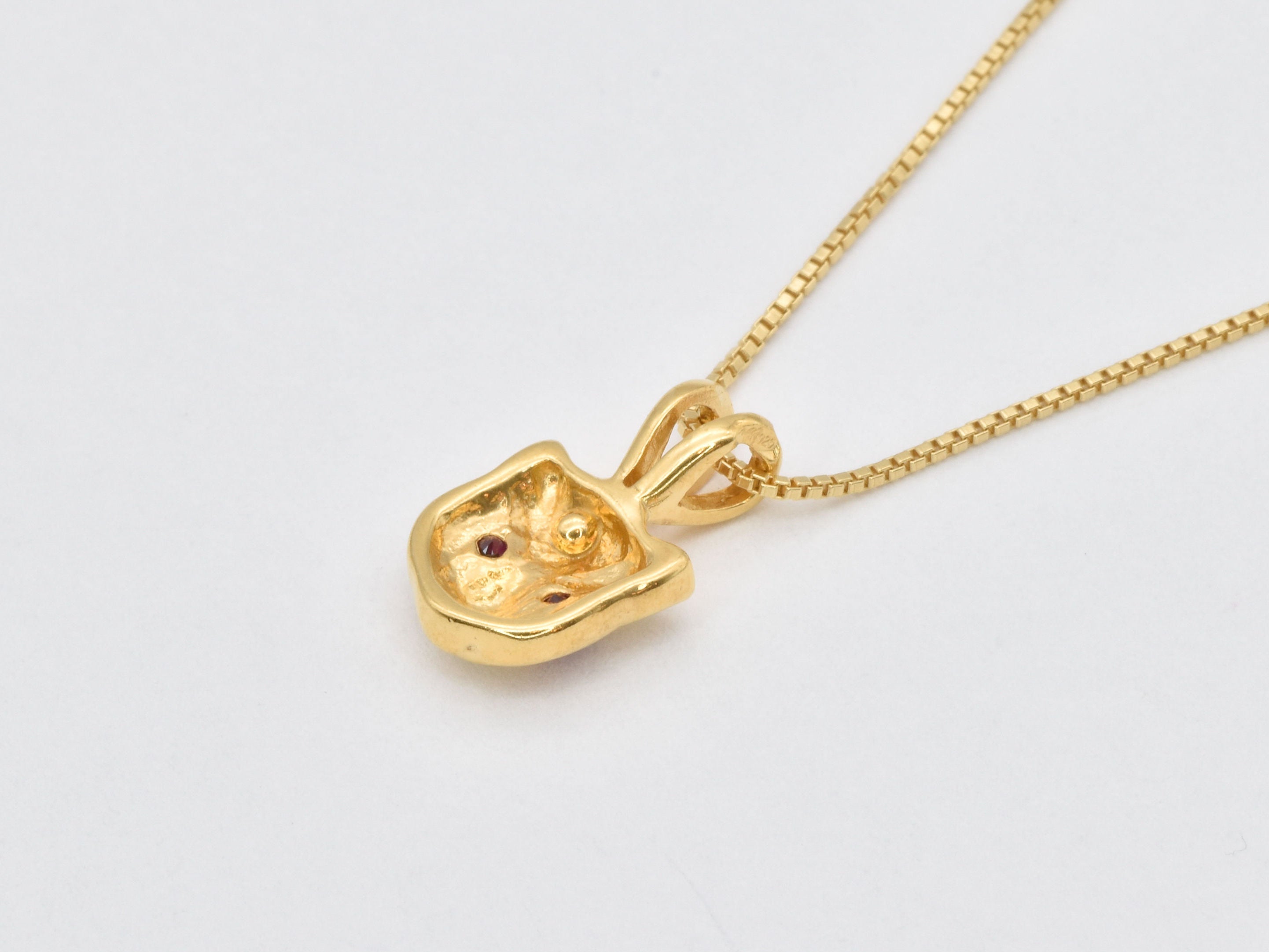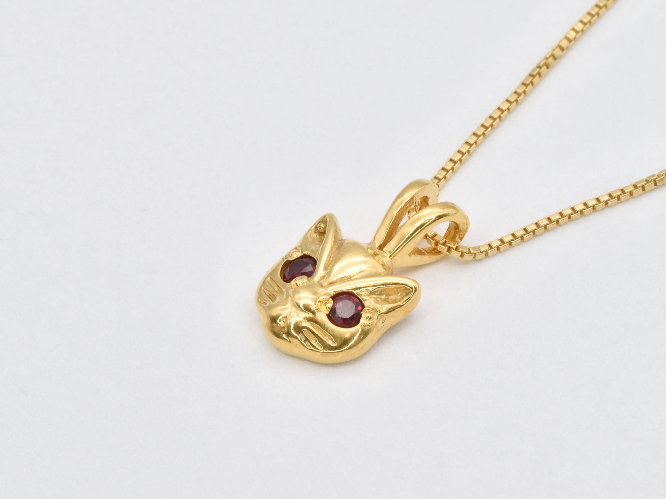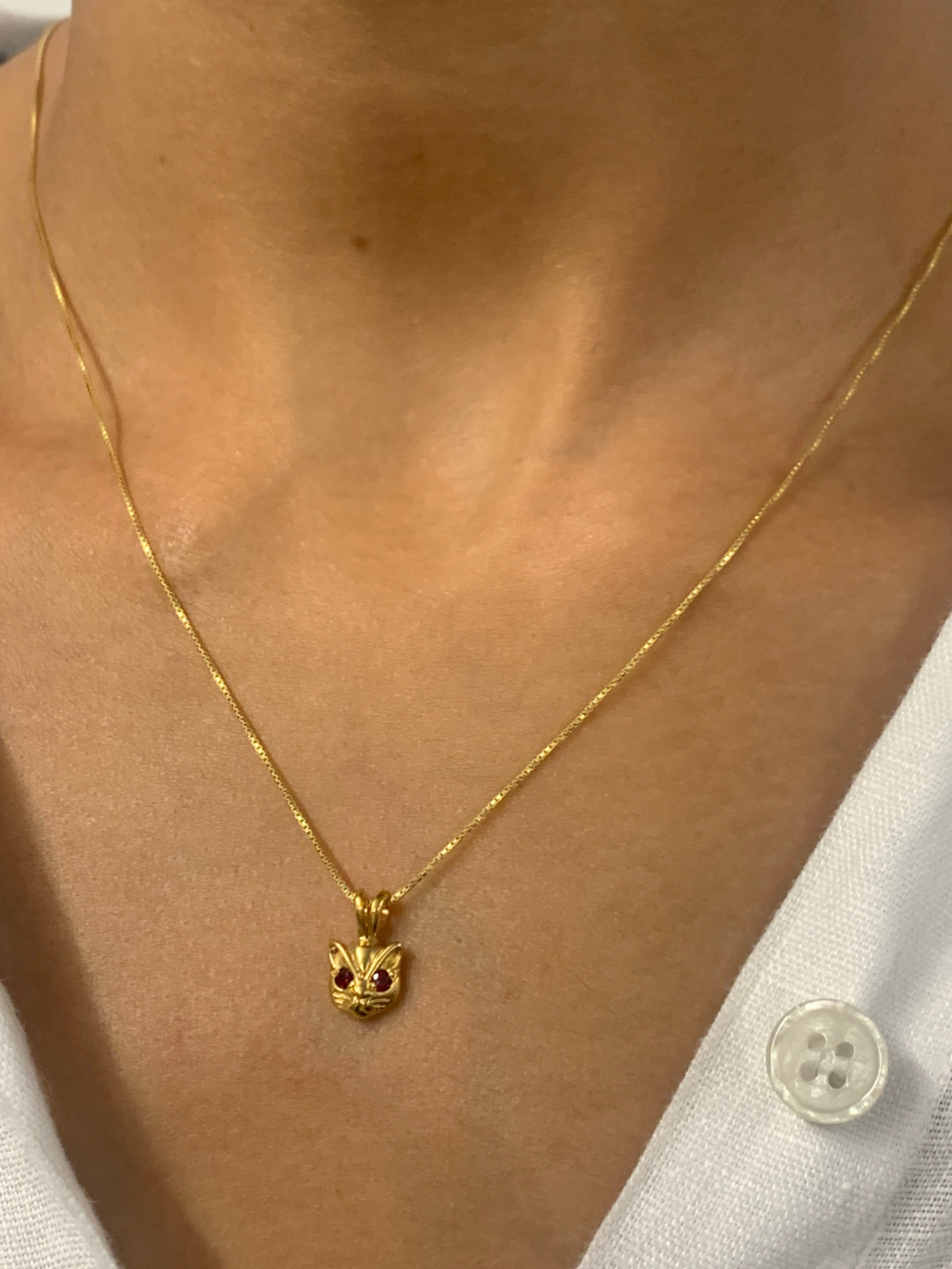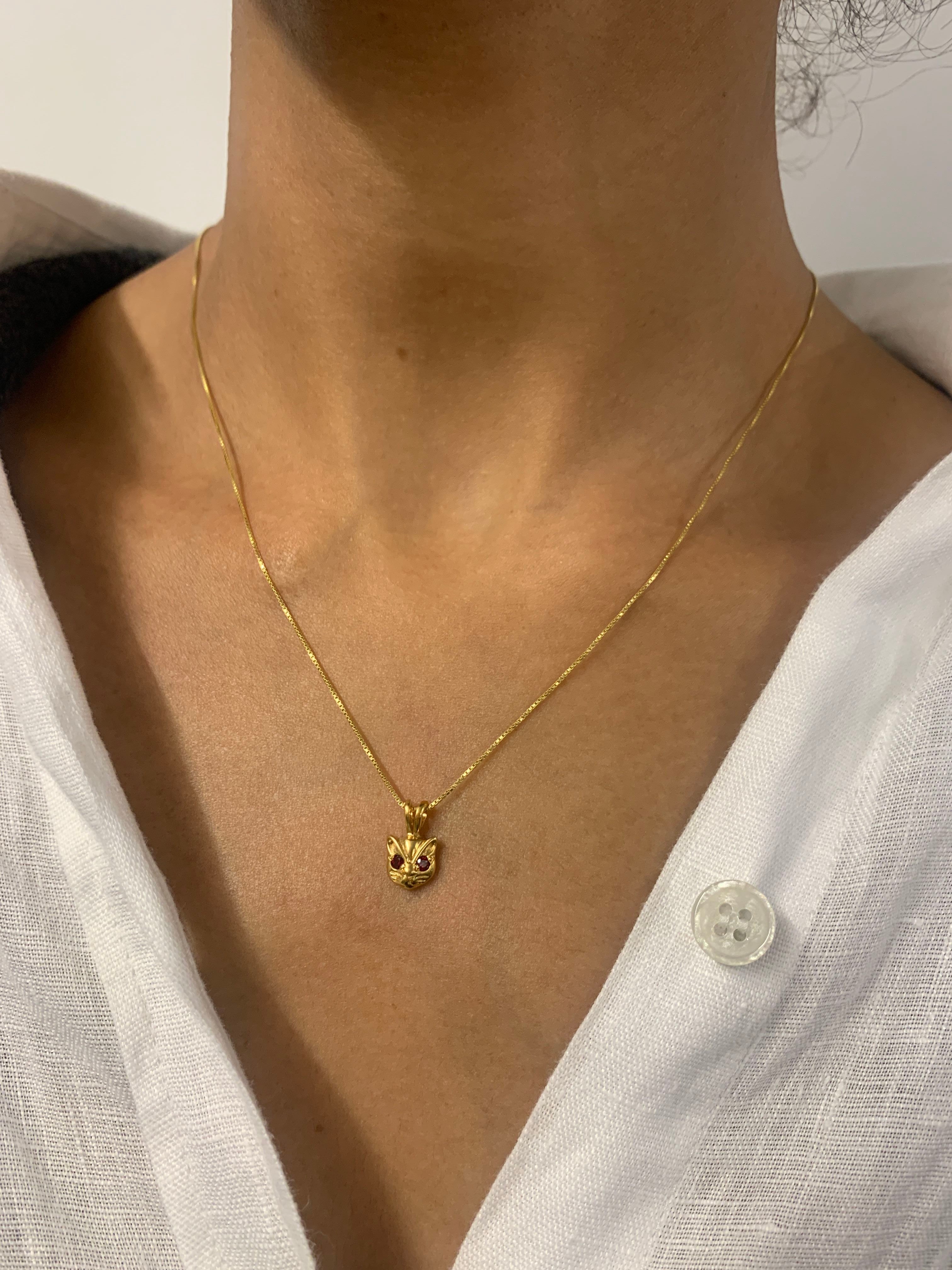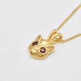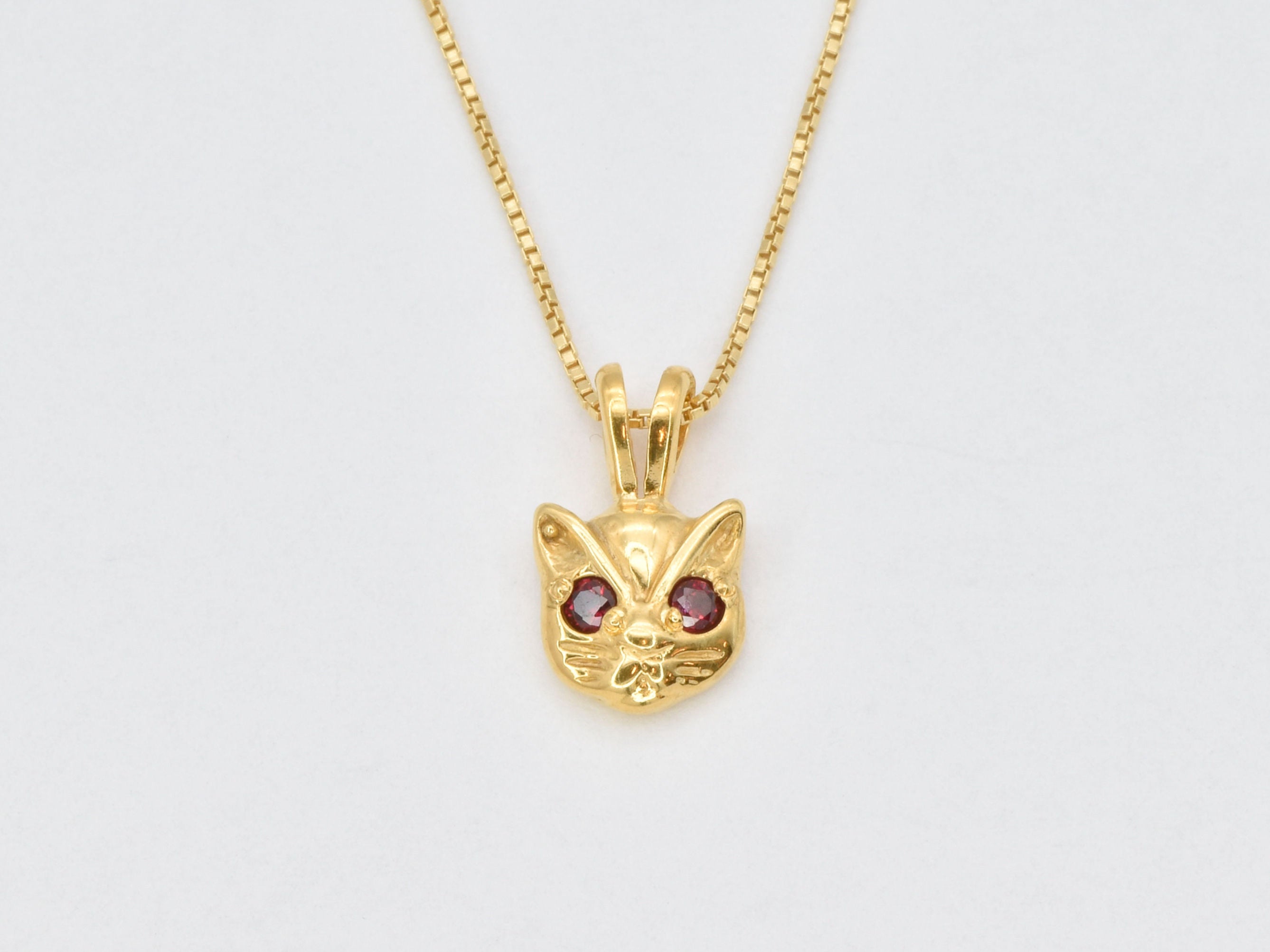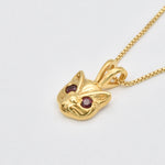 Gold Cat Ruby Pendant - Red Eyed Cat Necklace, Cat Lover Necklace