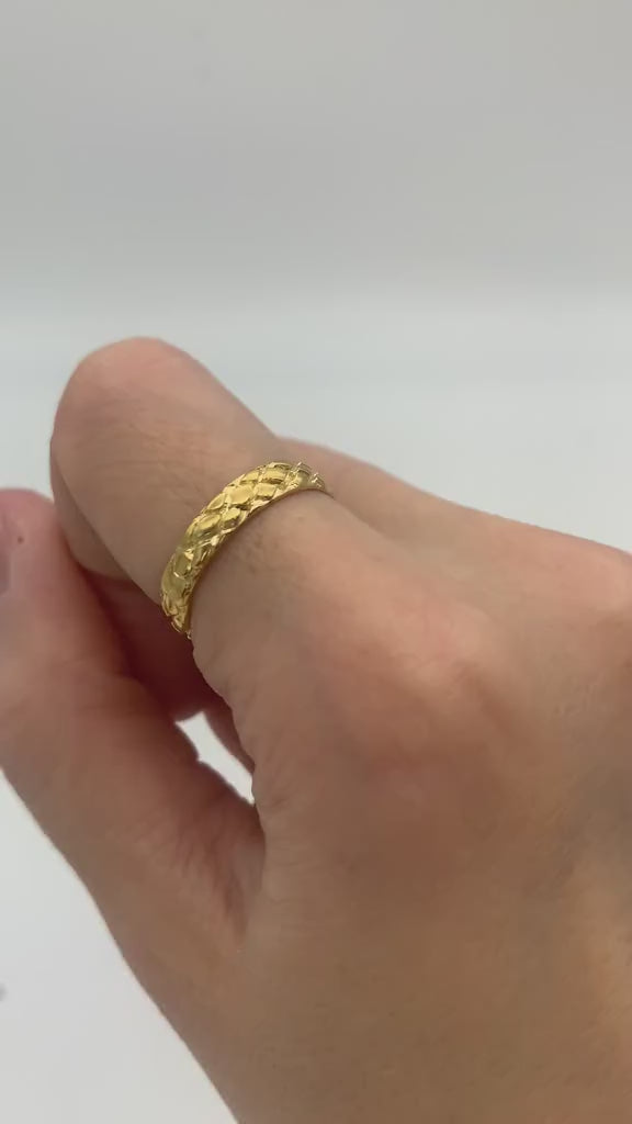Gold Checkered Ring - Textured Ring - Gold Carved Band