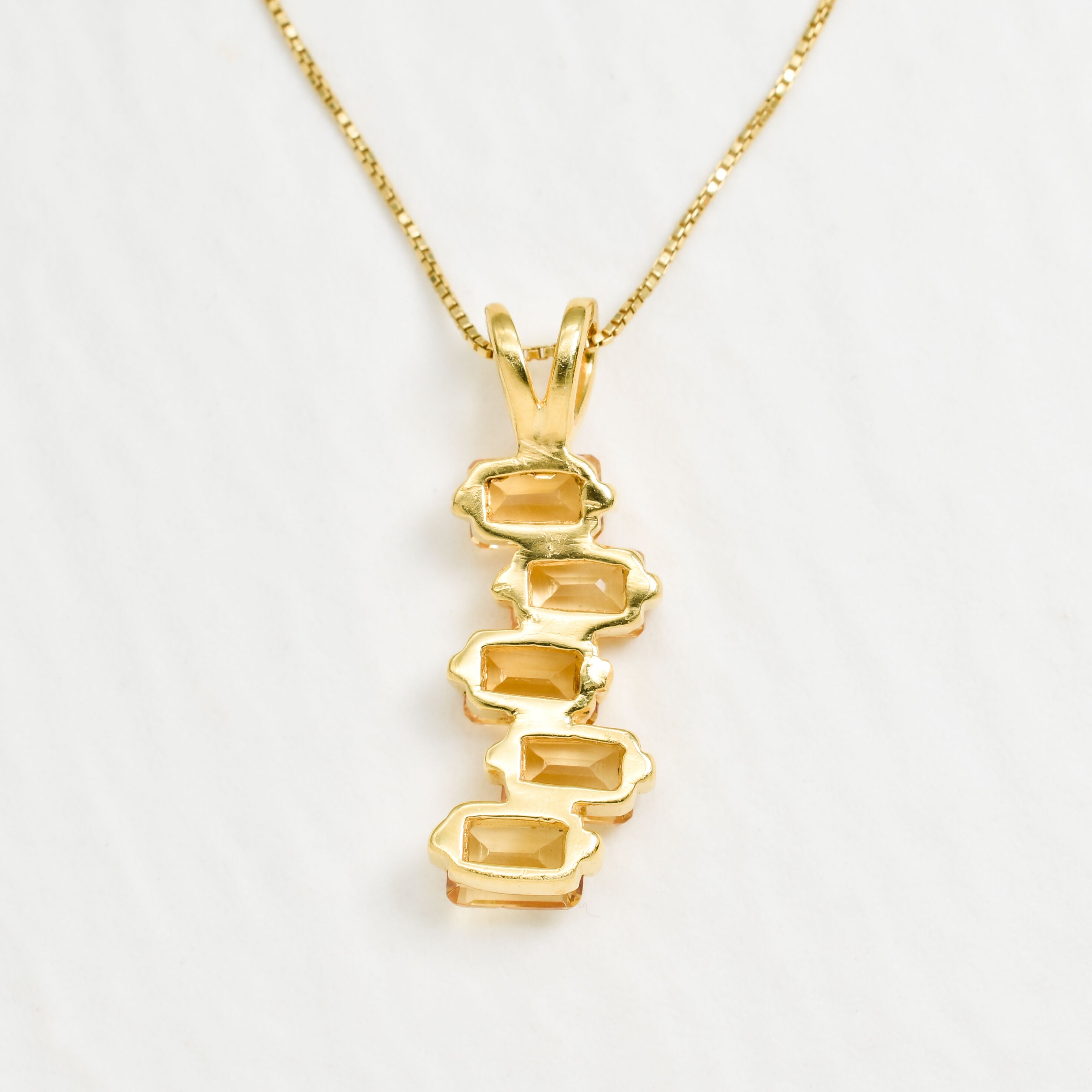 Gold pendant featuring multiple 6x4mm diamond cut natural citrine stones stacked vertically