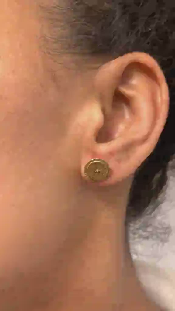Gold Compass Earrings - Round Gold Studs - North Star Earrings