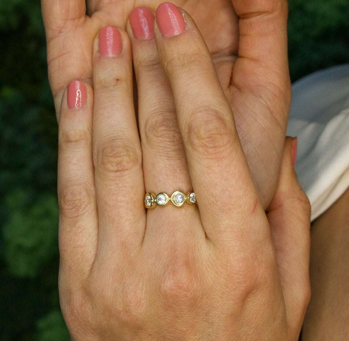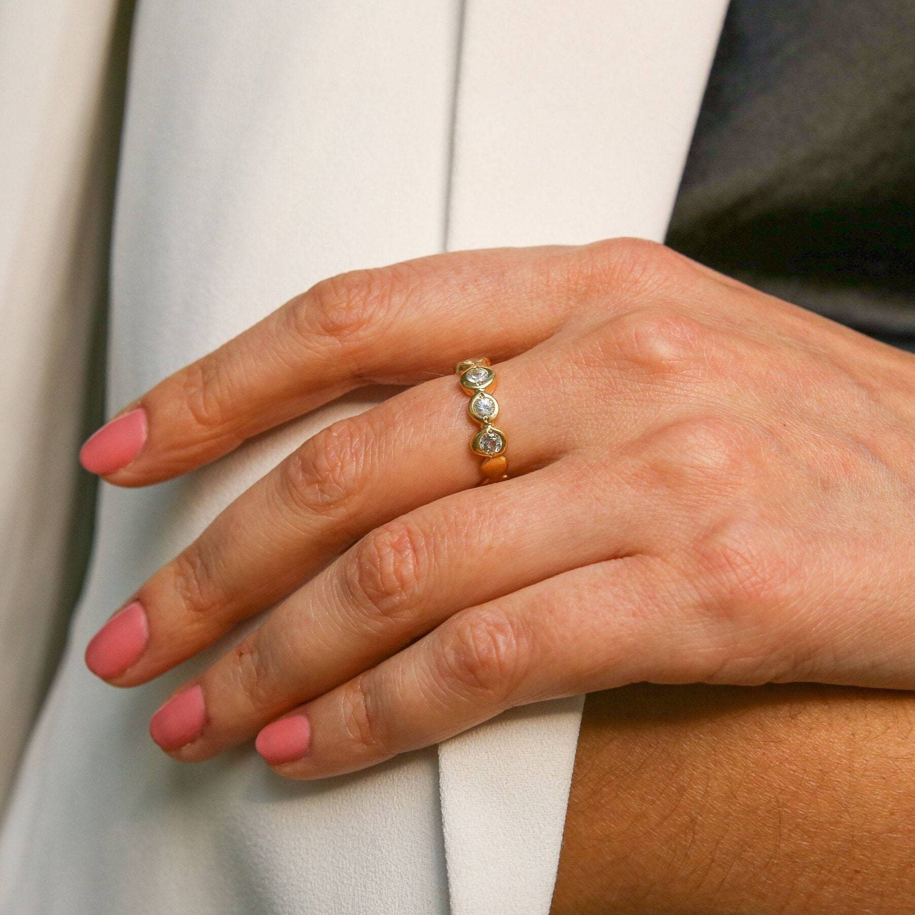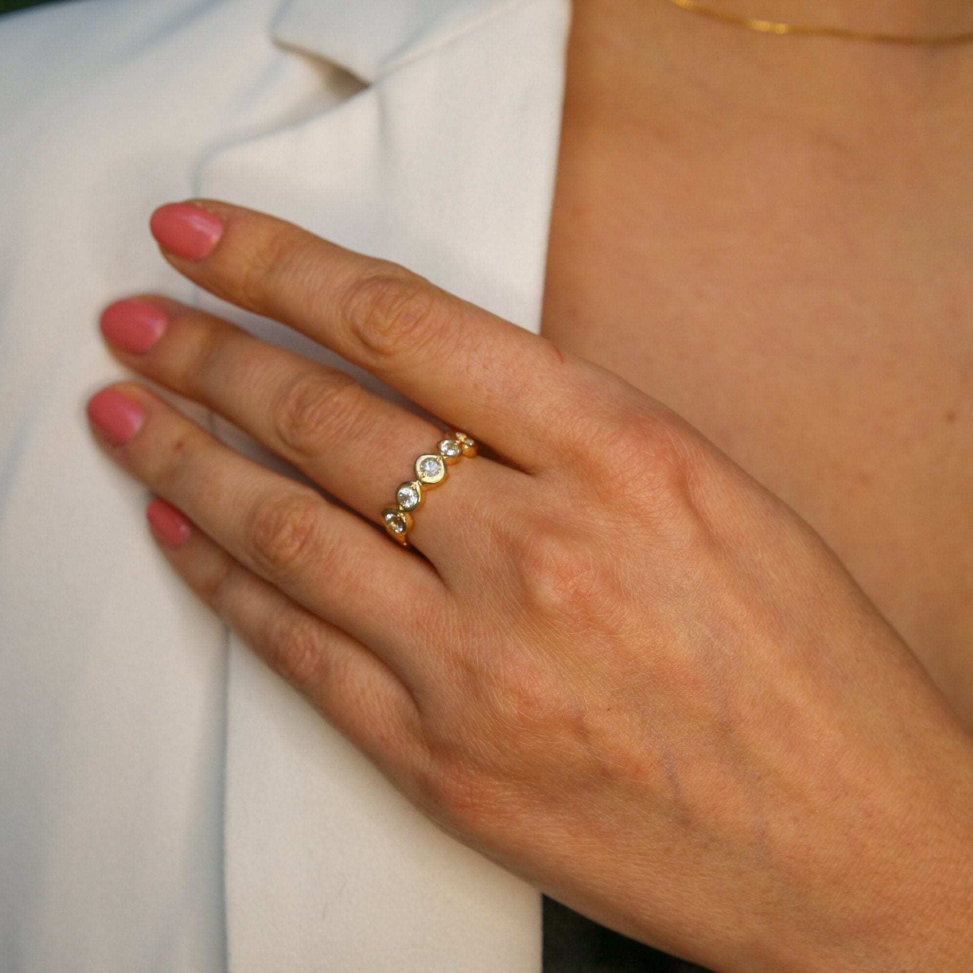 Gold Diamond Ring - Gold Stackable Band - Dainty Diamond Ring