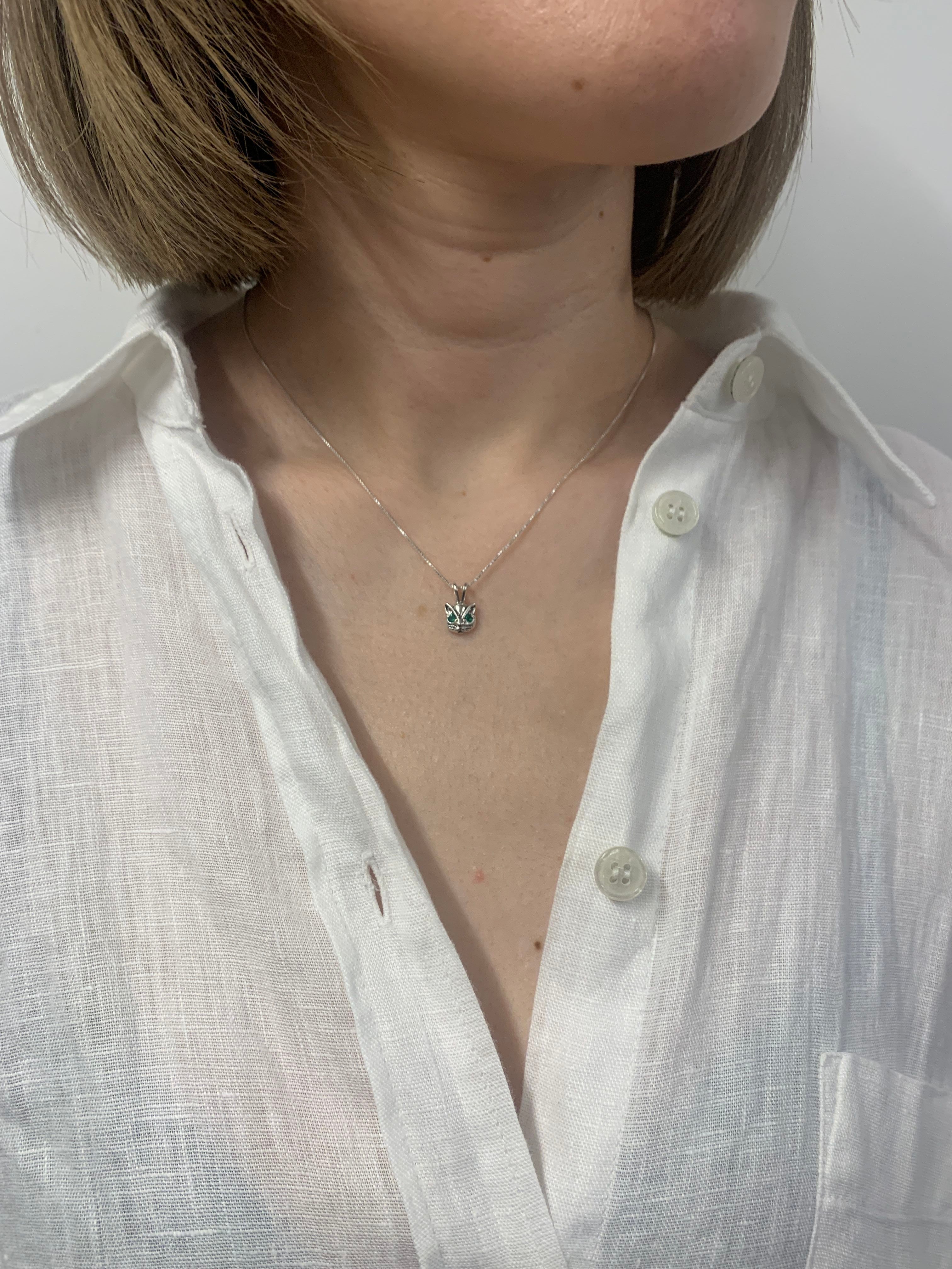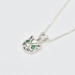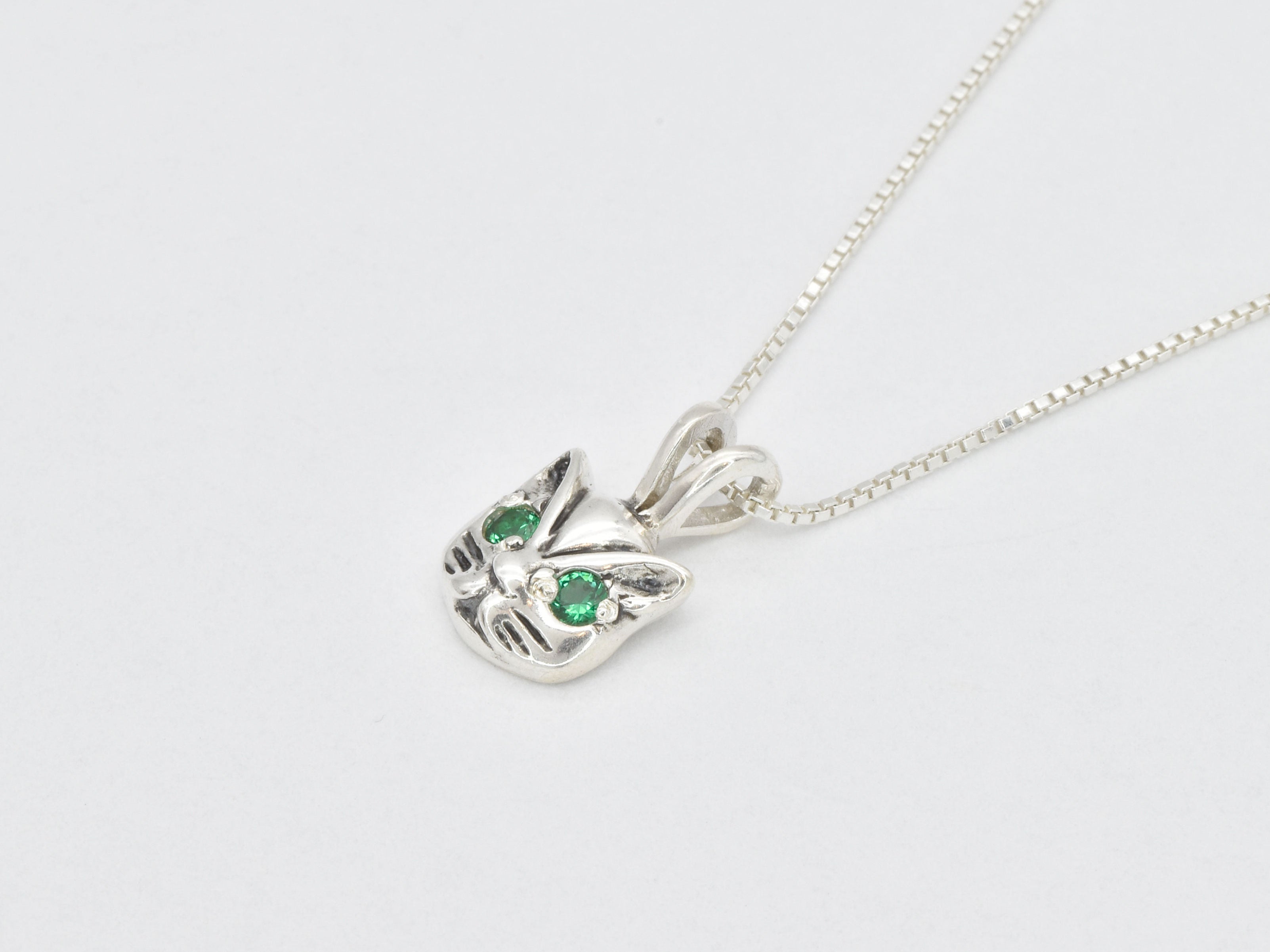 Emerald Cat Pendant set with Created Emerald in a diamond cut & brilliant green color at 3mm each.