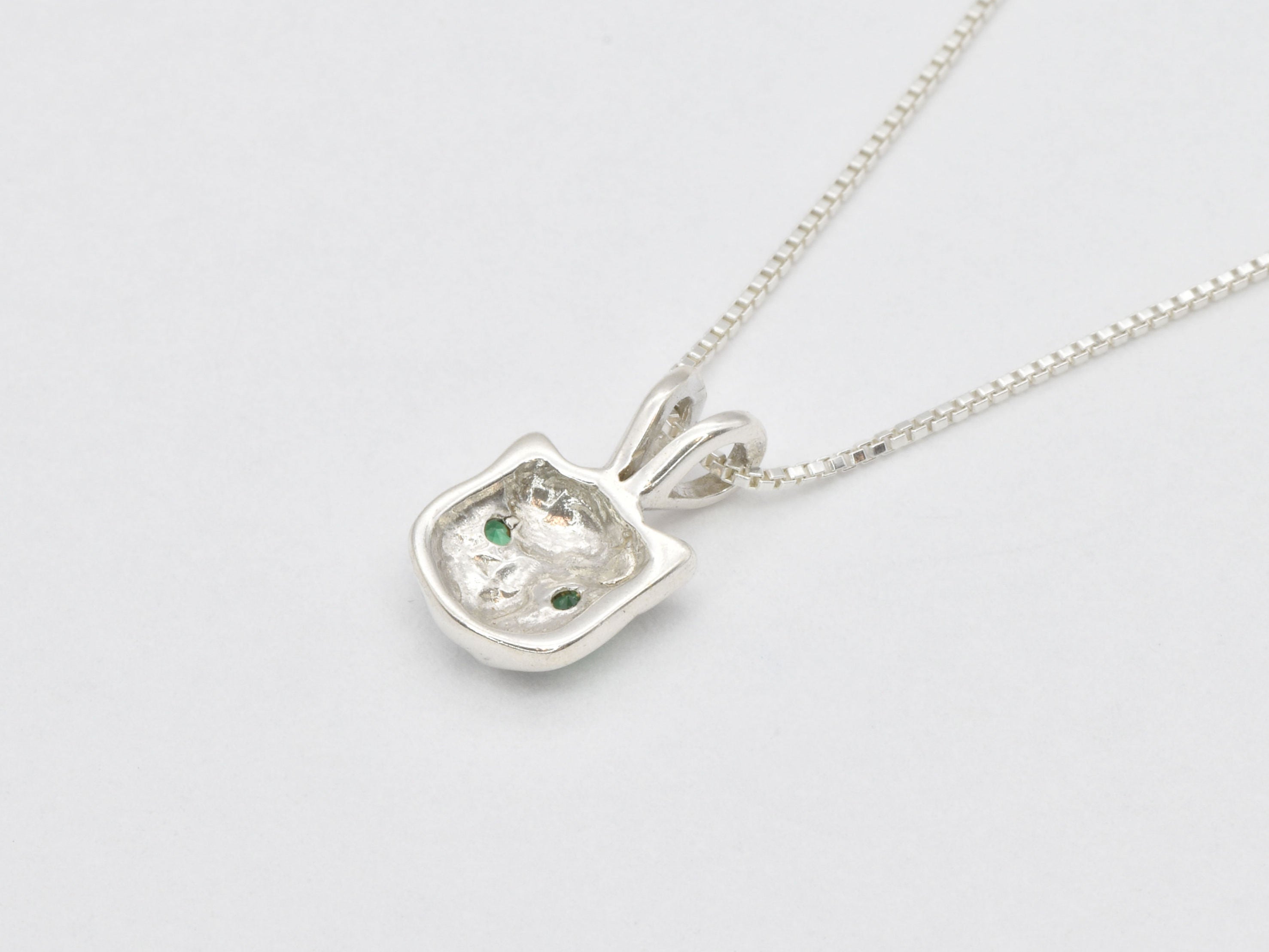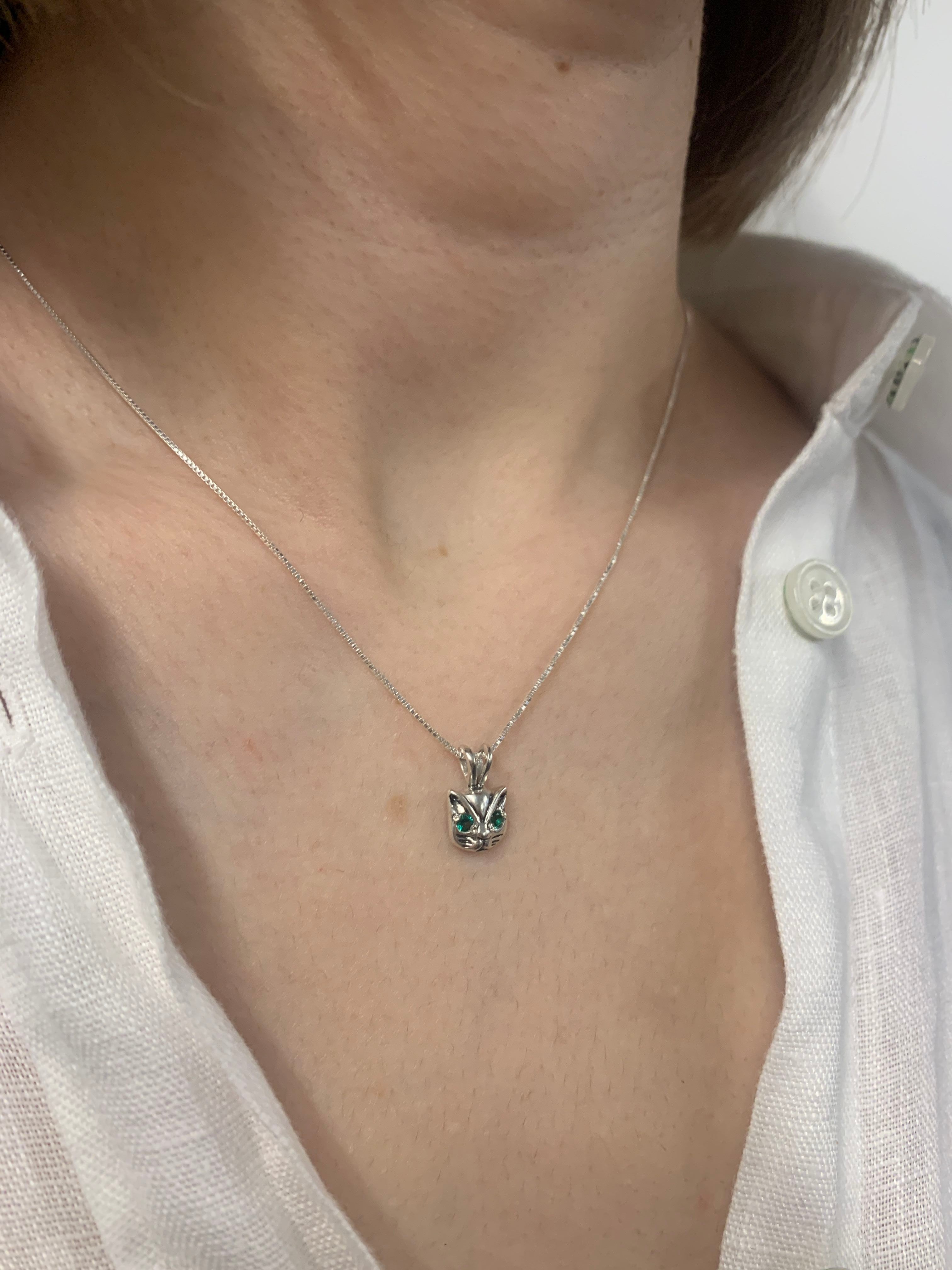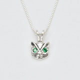 Emerald Cat Pendant - Green Eyed Cat Necklace - Feline Love Necklace