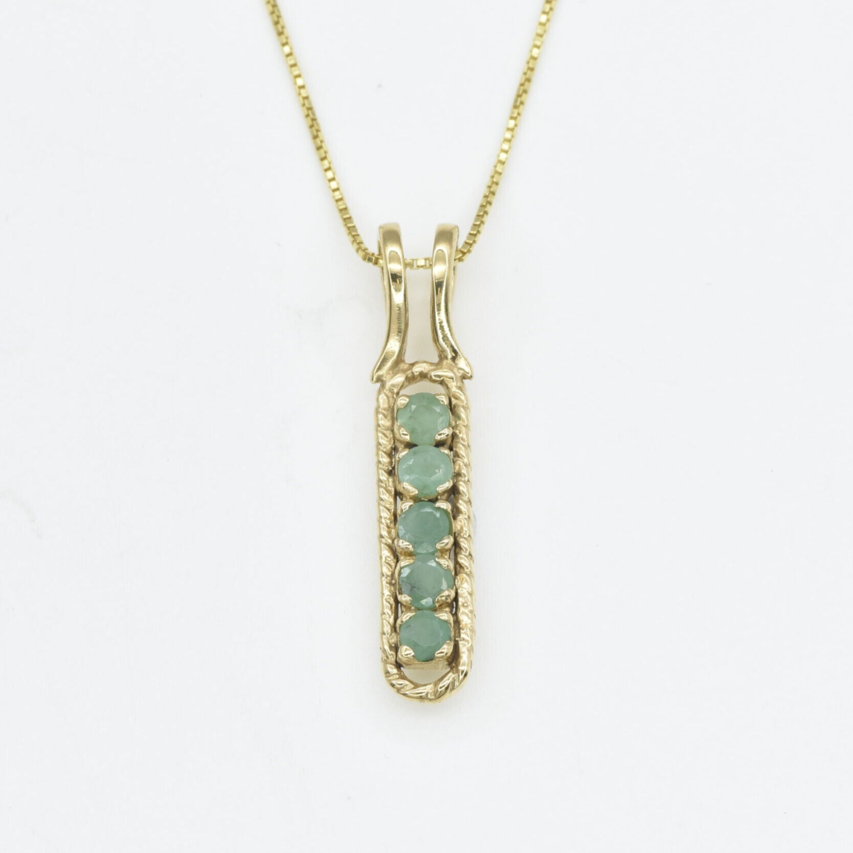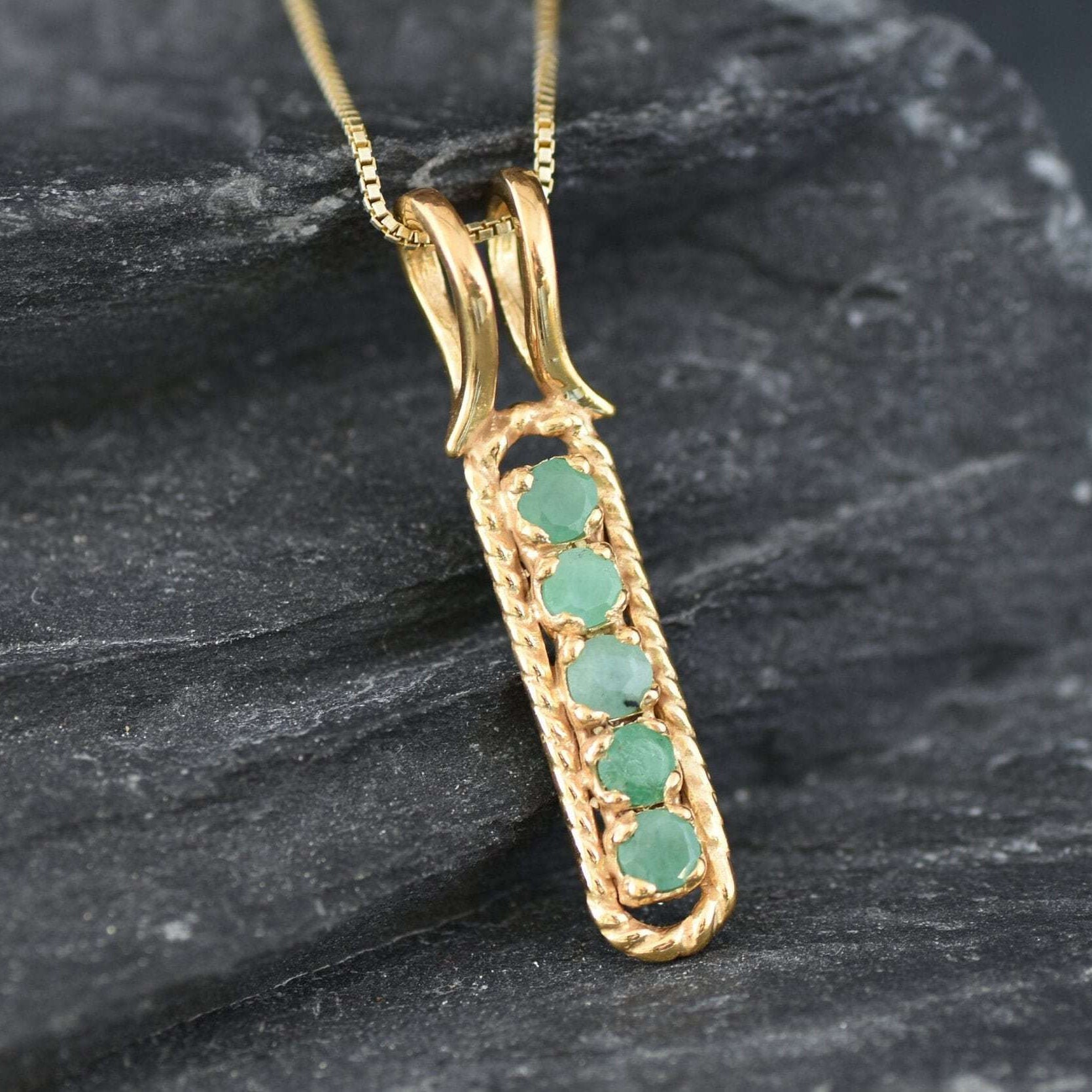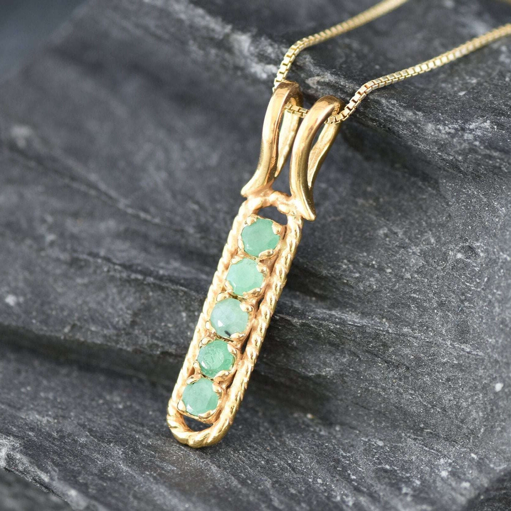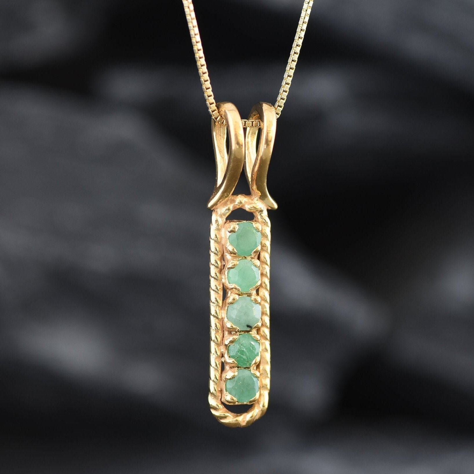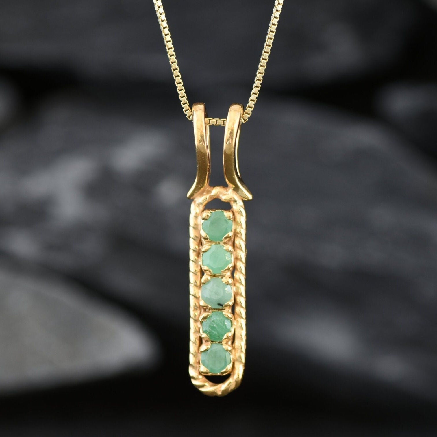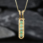 Gold Vertical Emerald Necklace - Natural Emerald Pendant, Green Gemstone Pendant