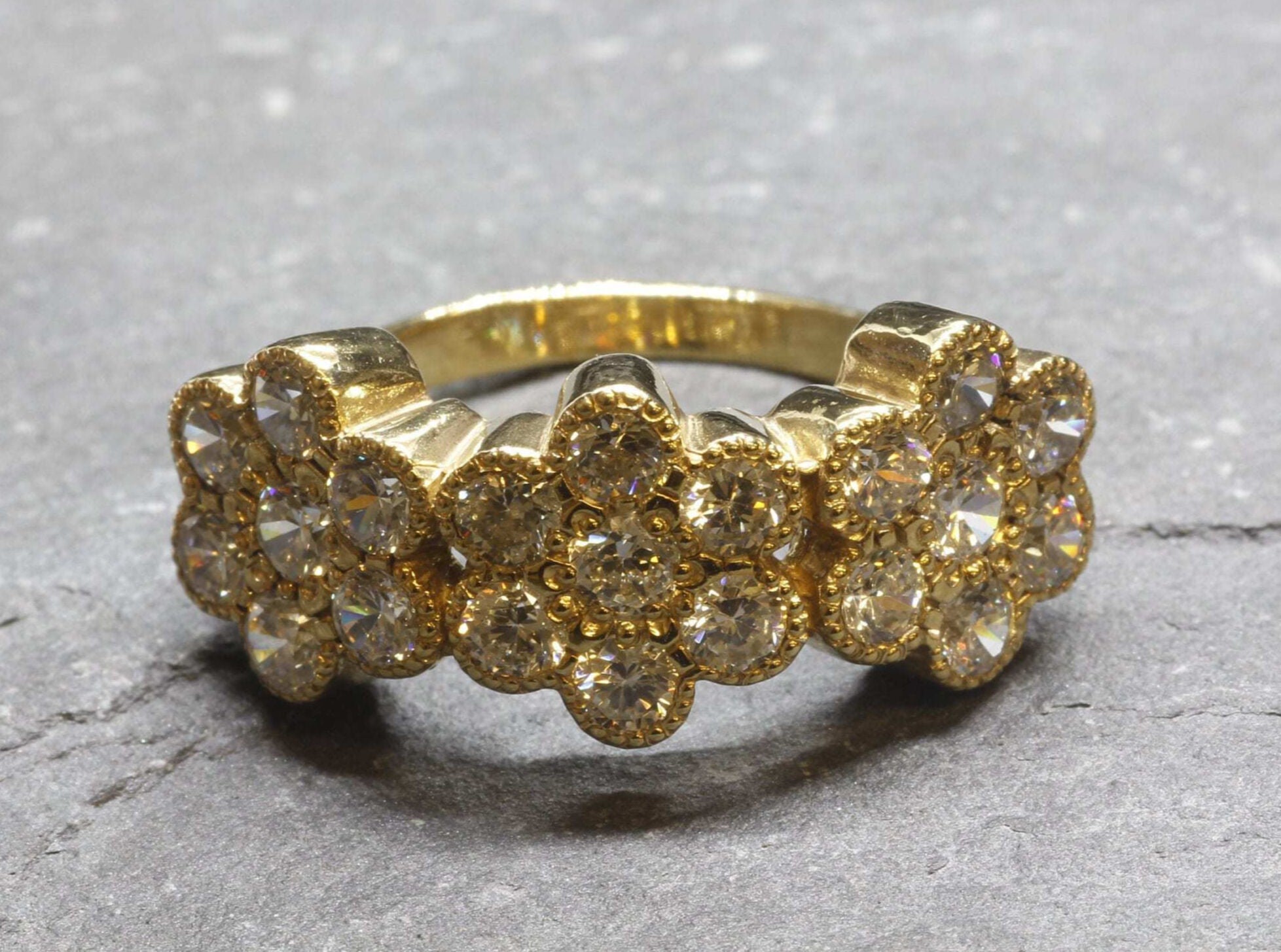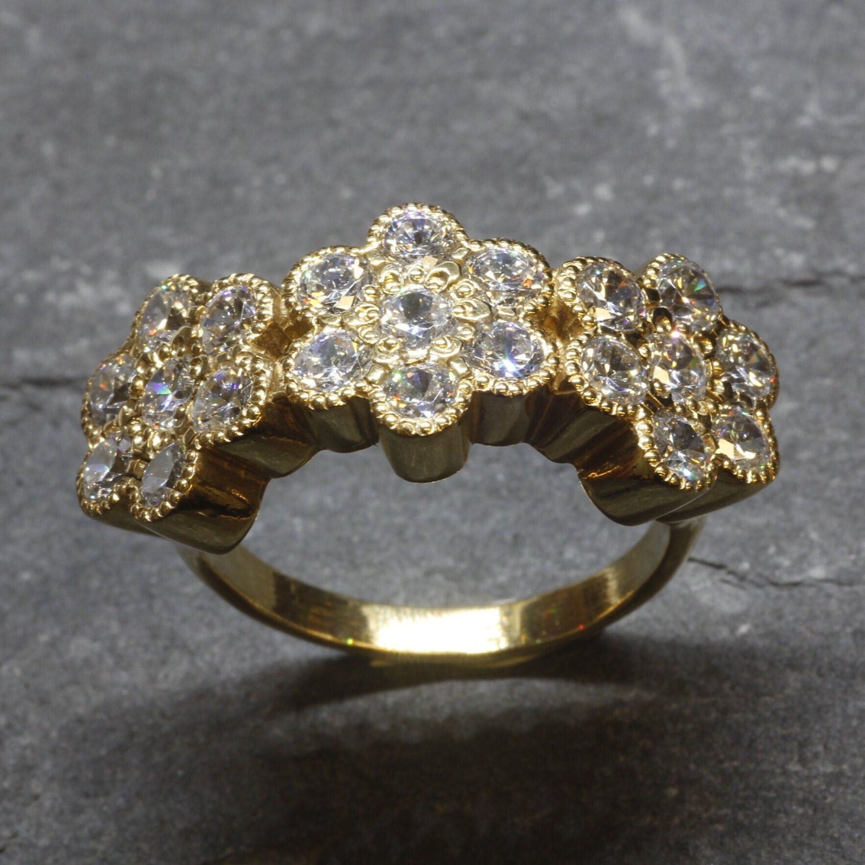 Diamond Flower Ring - Gold Diamond Ring - Statement Flower Ring