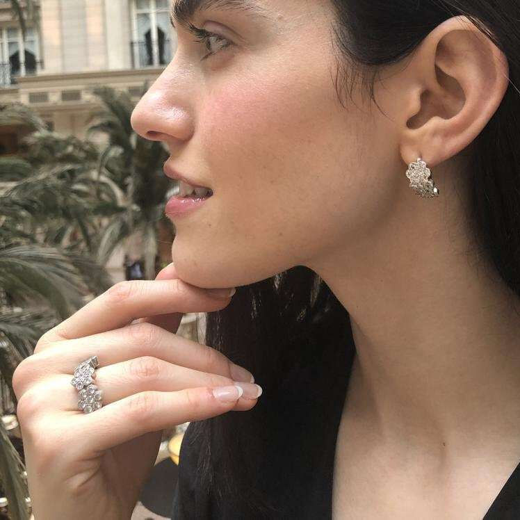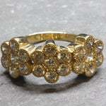 Diamond Flower Ring set with Created Diamonds in flawless clarity, at size 3mm each (3 Cts combined).