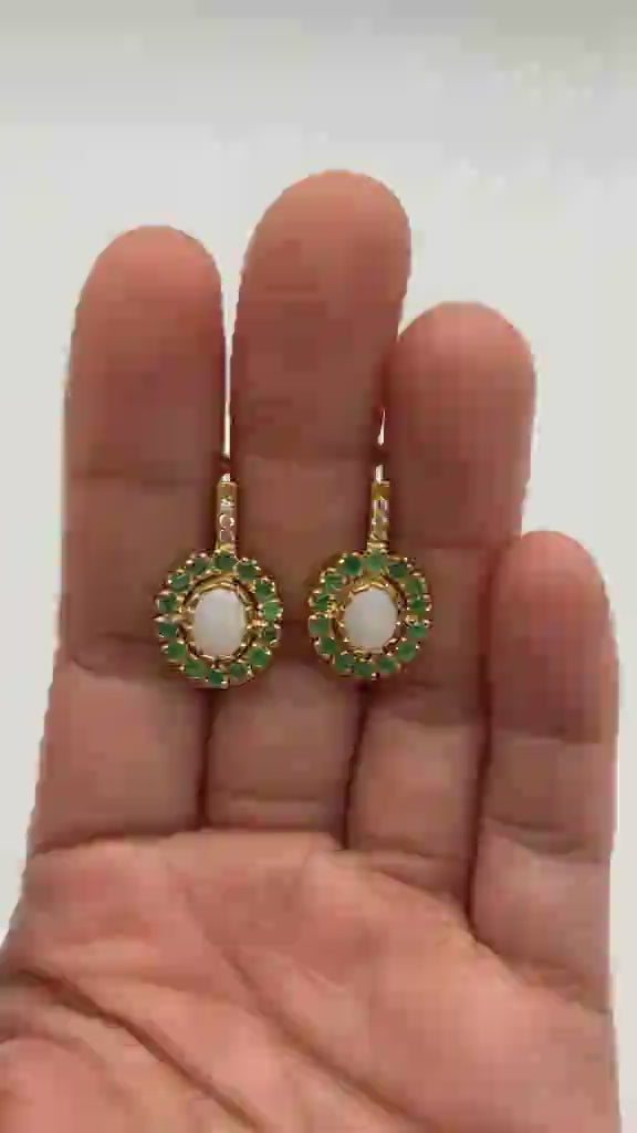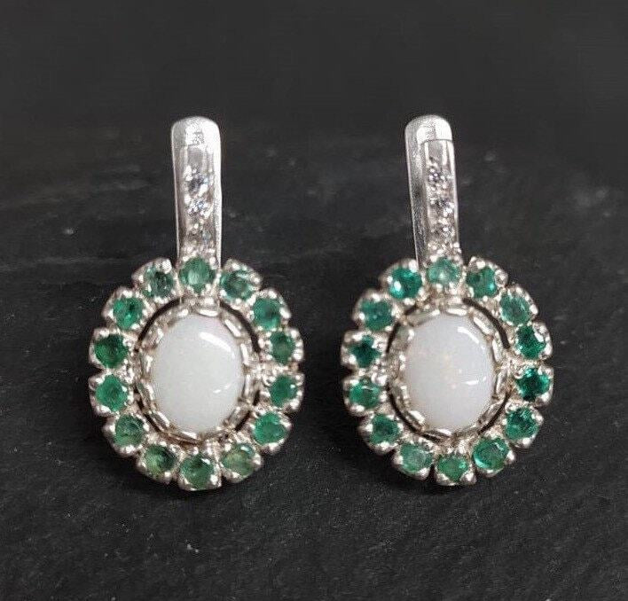 Victorian Opal Earrings, Natural Precious Opal, Emerald Earrings, October Birthstone, May Birthstone, Vintage Earrings, 925 Silver Earrings(1)