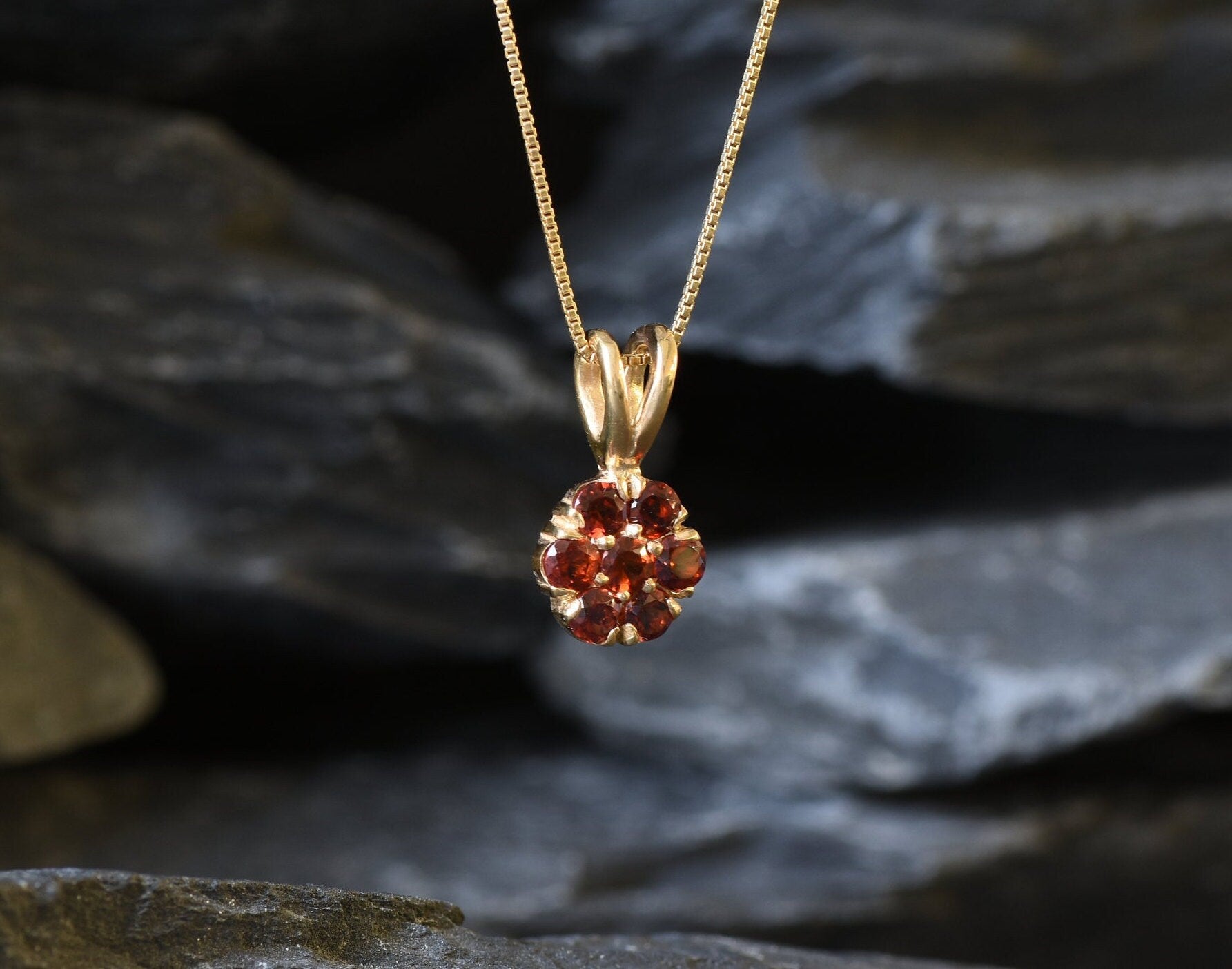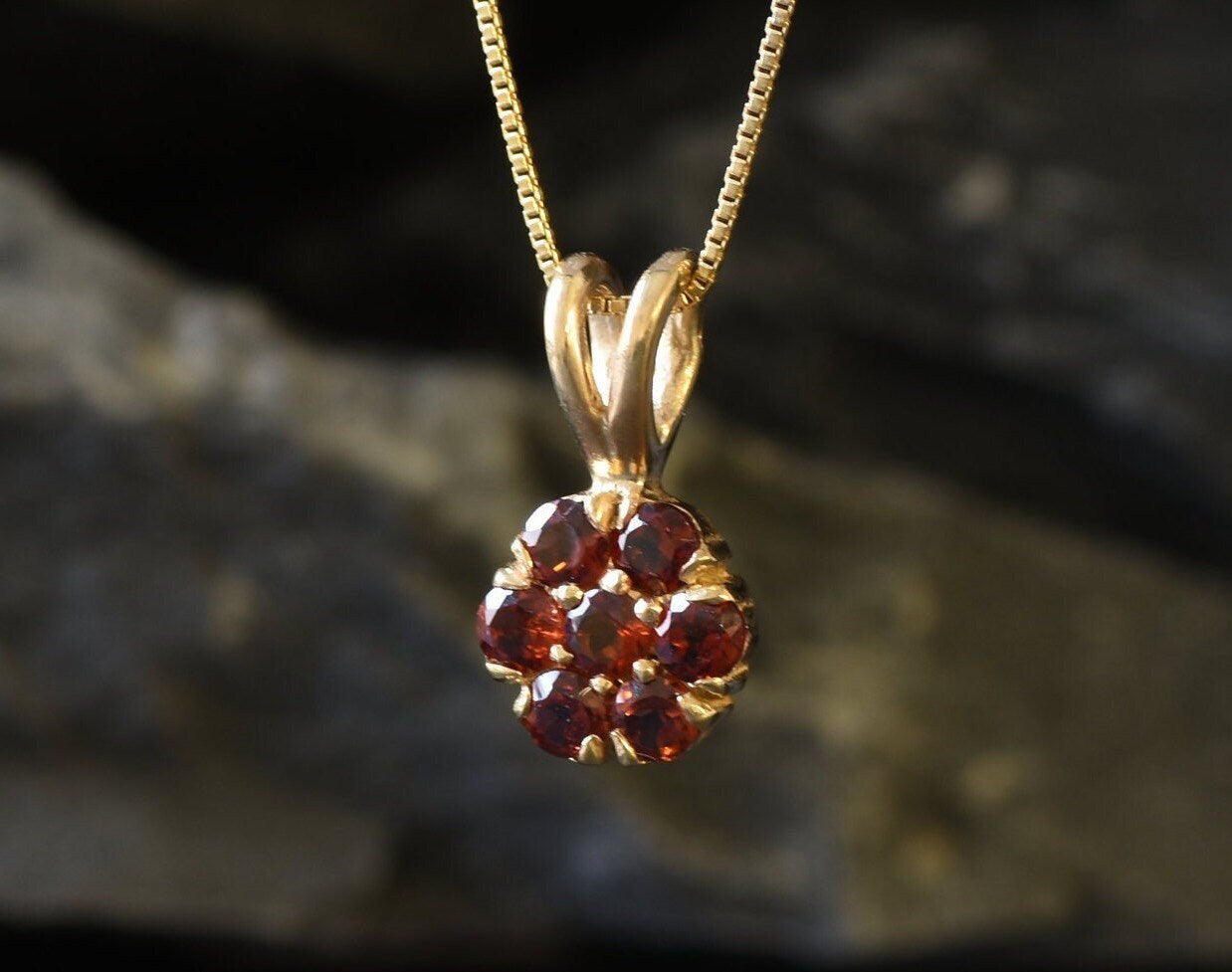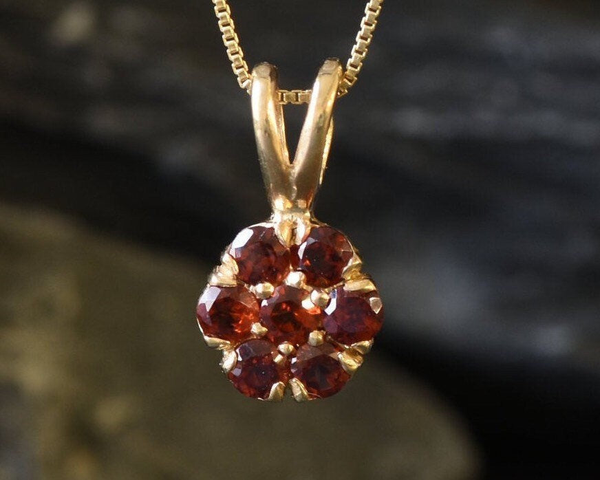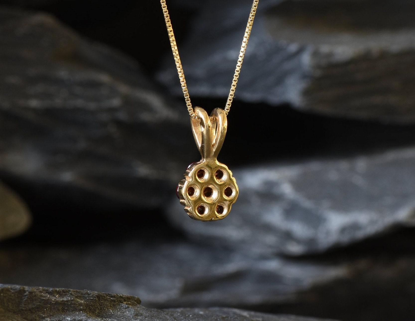 Red Flower Pendant, Natural Garnet Pendant, Dainty Pendant, January Birthstone, Daisy Pendant, Small Vintage Necklace, 925 Silver Pendant(1)
