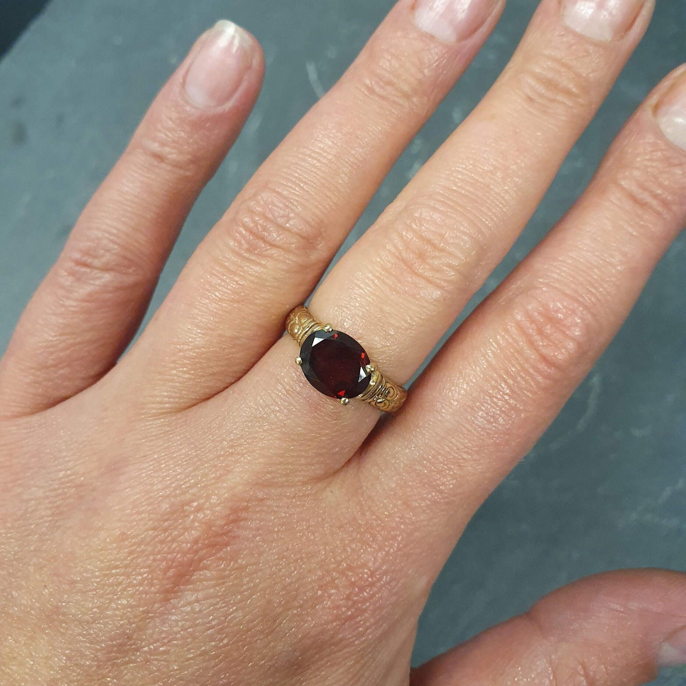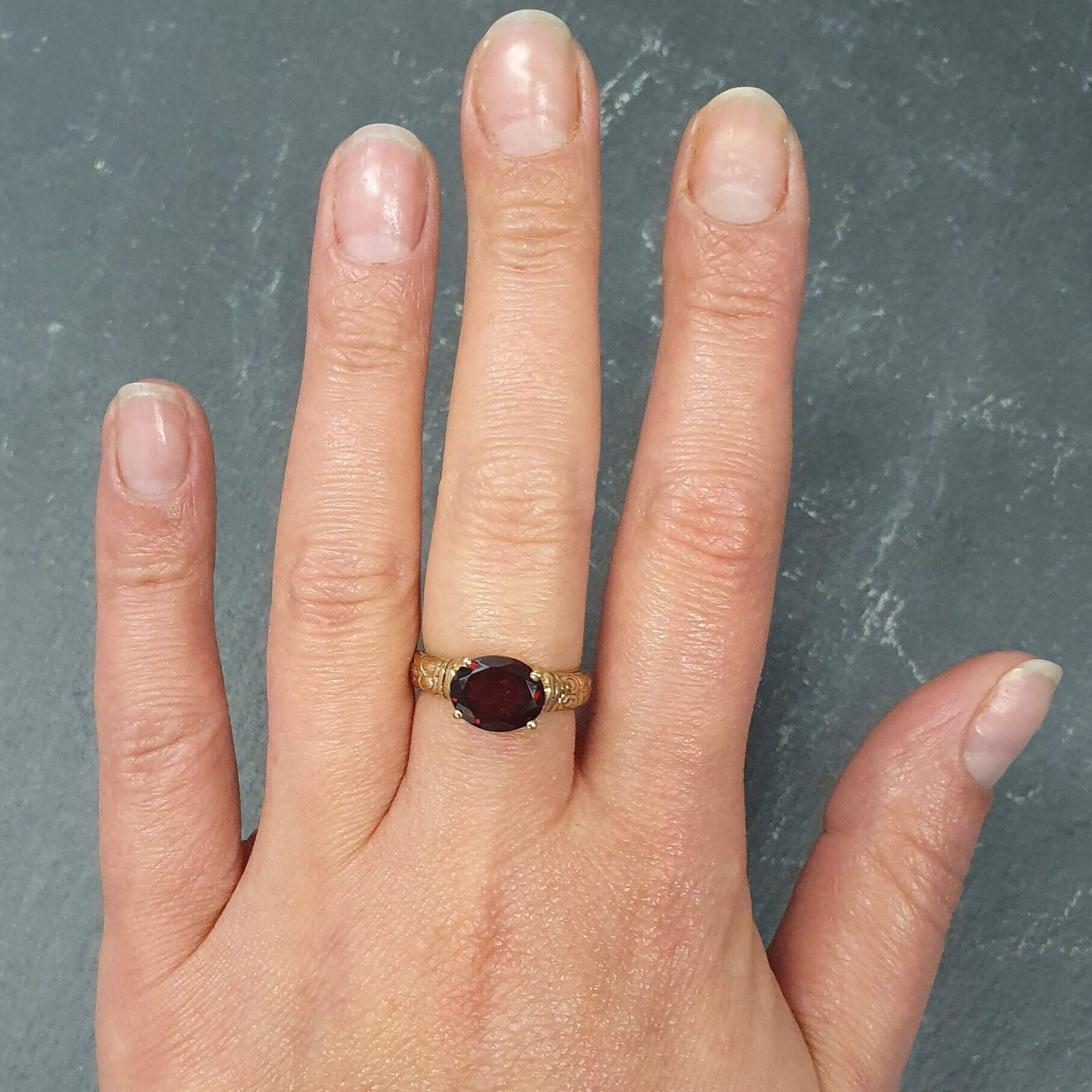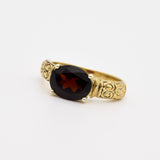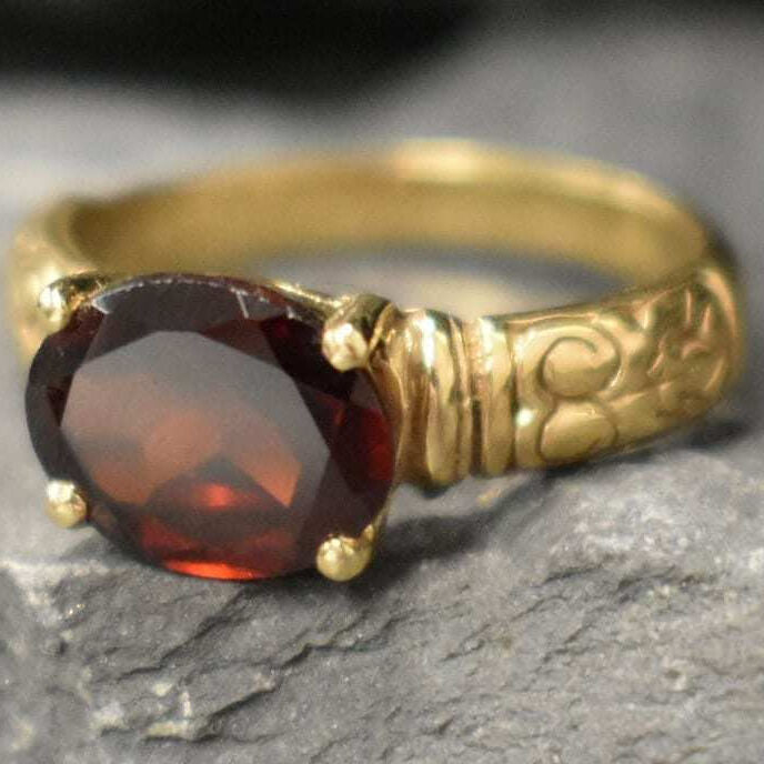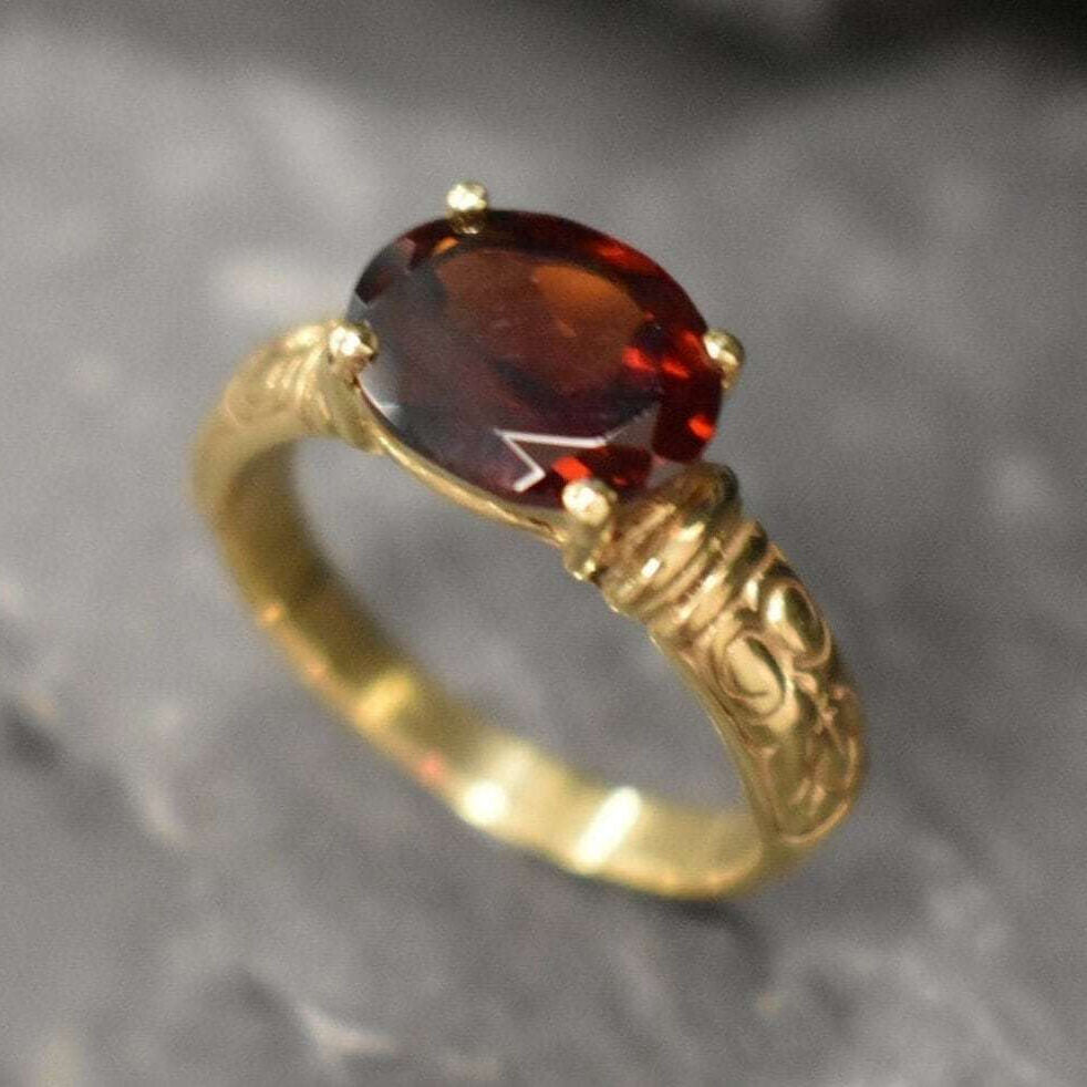 Gold Garnet Ring - Red Solitaire Ring - Vintage Garnet Ring