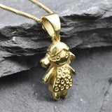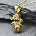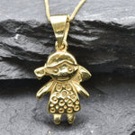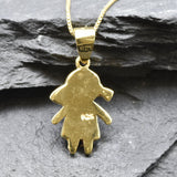 Gold Girl Pendant - Pigtail Doll Necklace, Little Girl Necklace