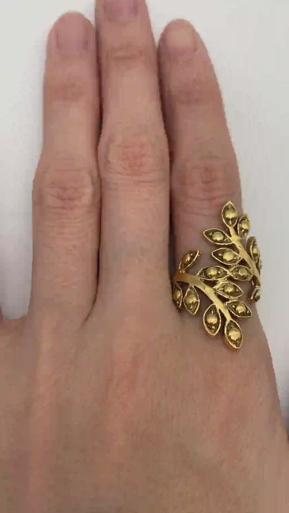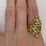 Gold Olives Ring - Ivy Leaf Ring, Leaves Long Ring
