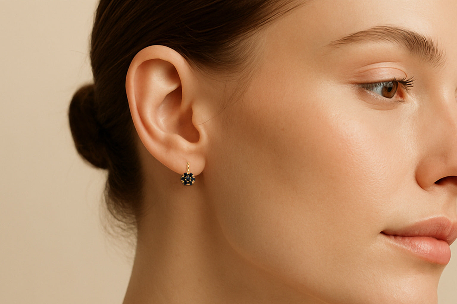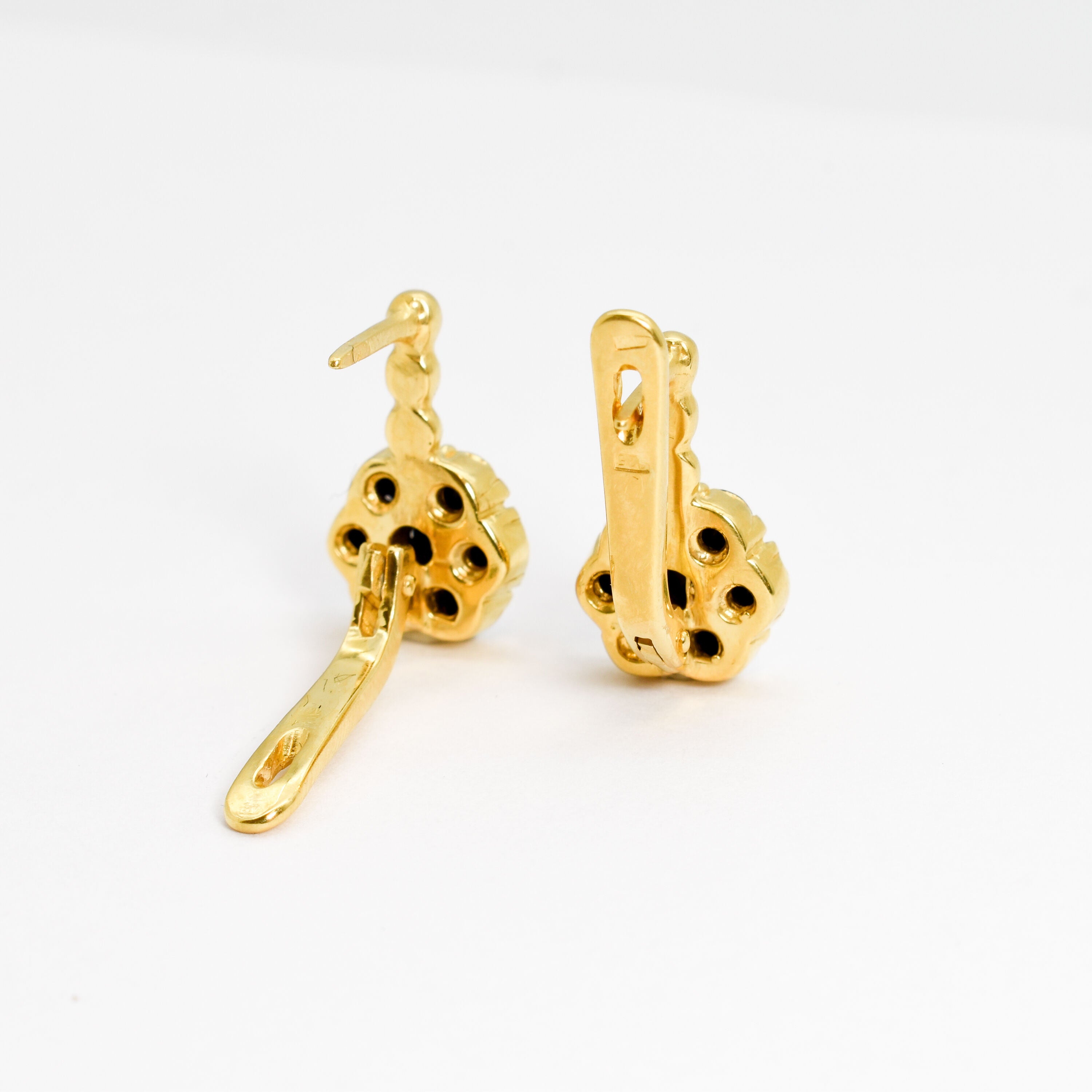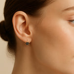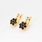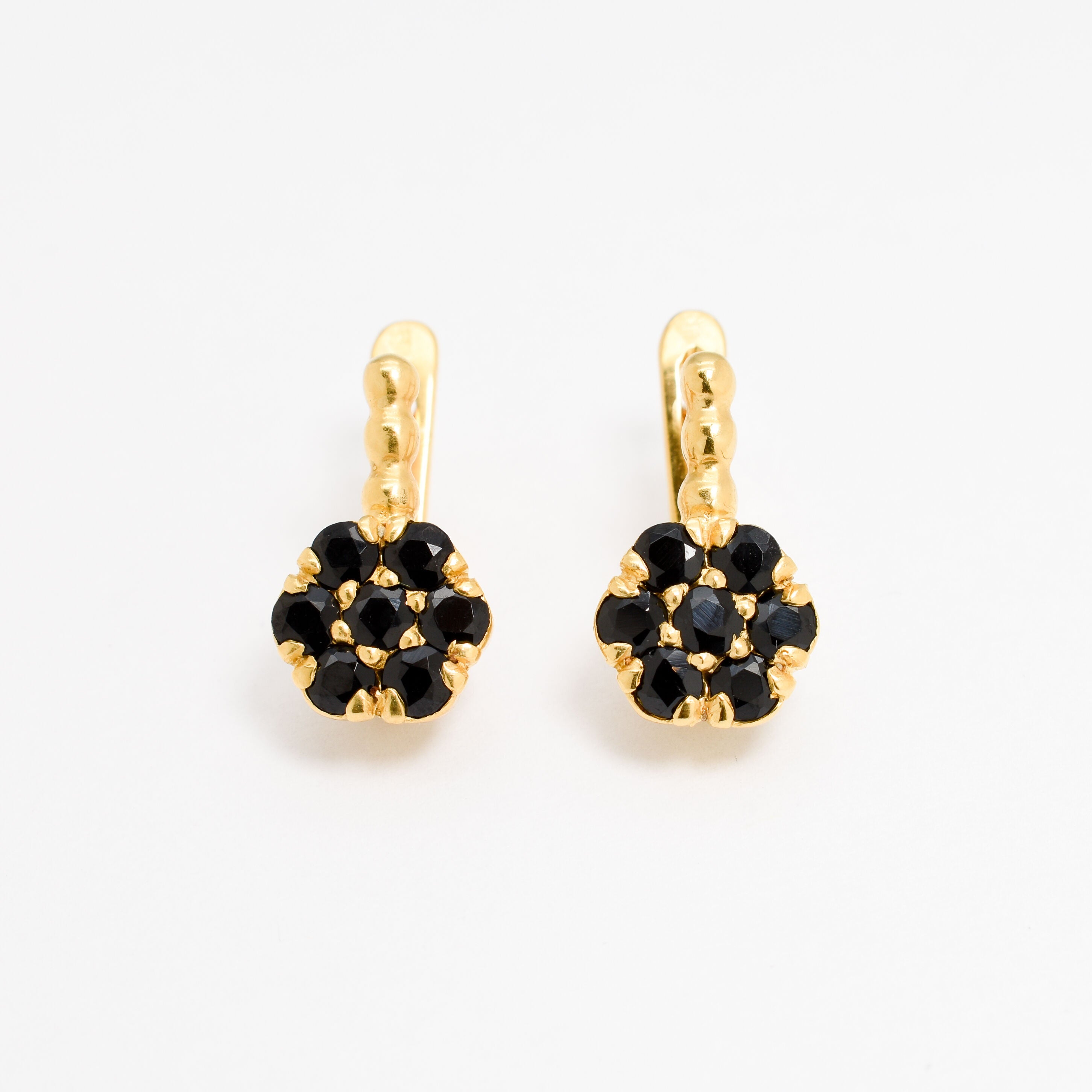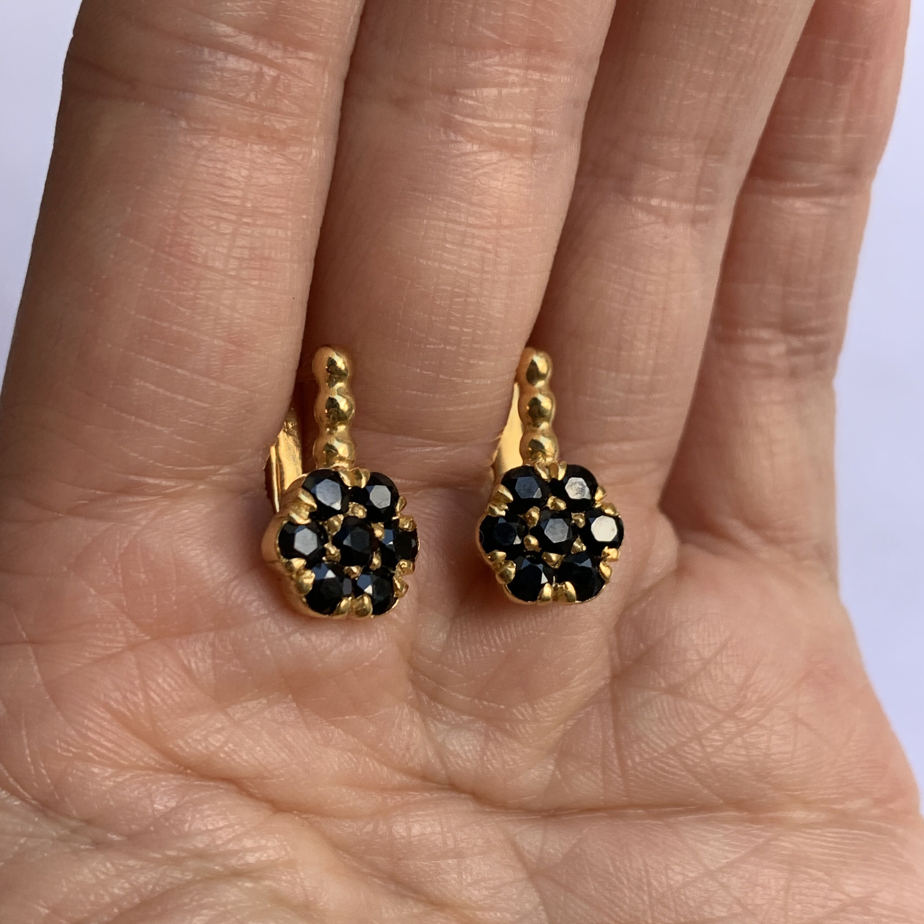 Gold Onyx Flower Earrings set with a Natural Onyx in a diamond cut & stunning natural black color, at 3mm each, 1.5 Carats a pair, from Europe.