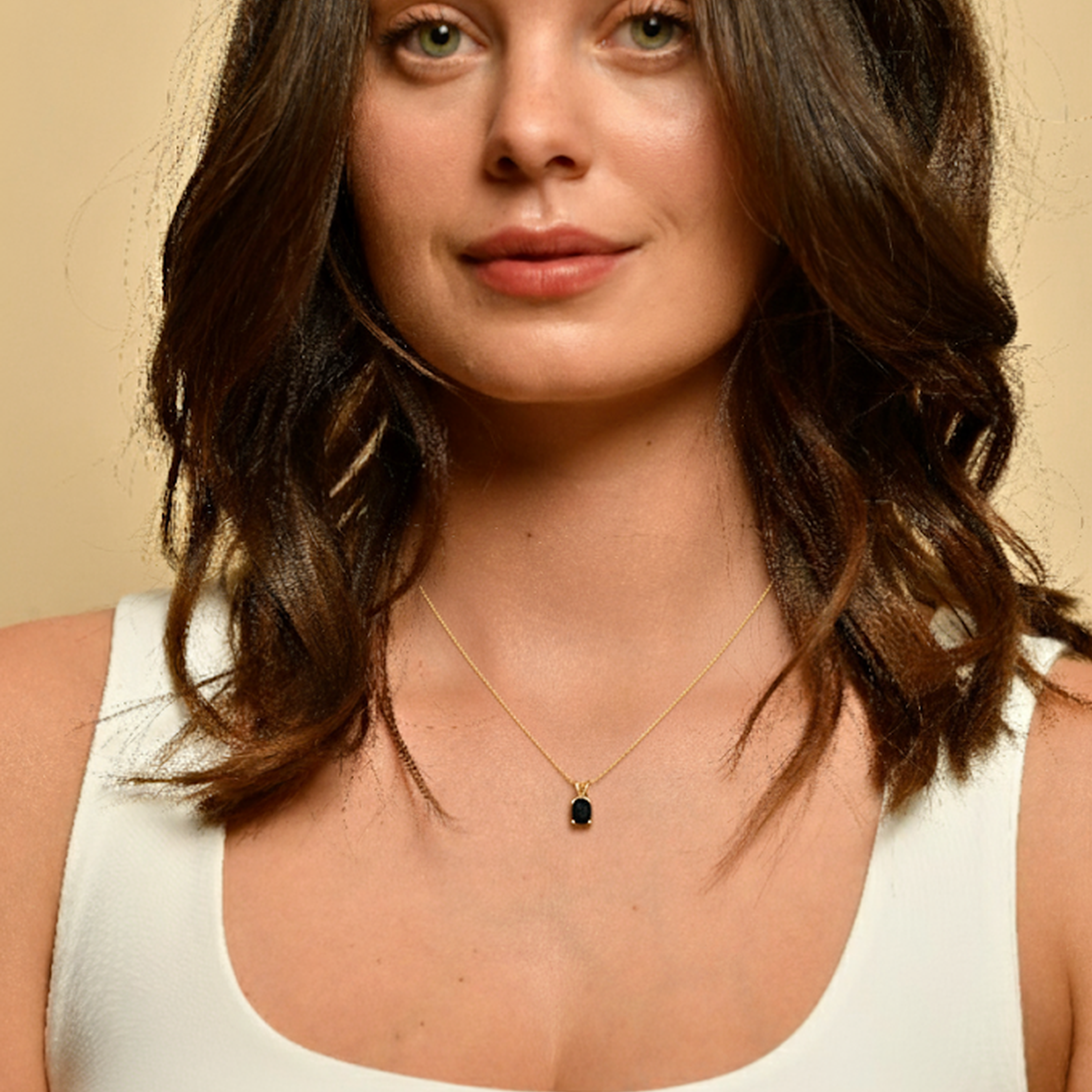 Gold Onyx Pendant close-up - Elegant black oval pendant in 18k Gold Vermeil for daily wear and special gift occasions.