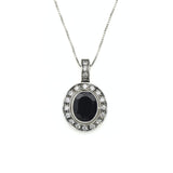 Onyx Pendant, Natural Onyx, Onyx Necklace, Black Oval Pendant, Halo Pendant, Black Oval Gemstone, Victorian Pendant, Silver Onyx, 925 Silver
