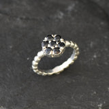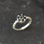 Onyx Ring, Black Flower Ring, Natural Onyx, Daisy Ring, Stackable Ring, Dainty Ring, Silver Ring