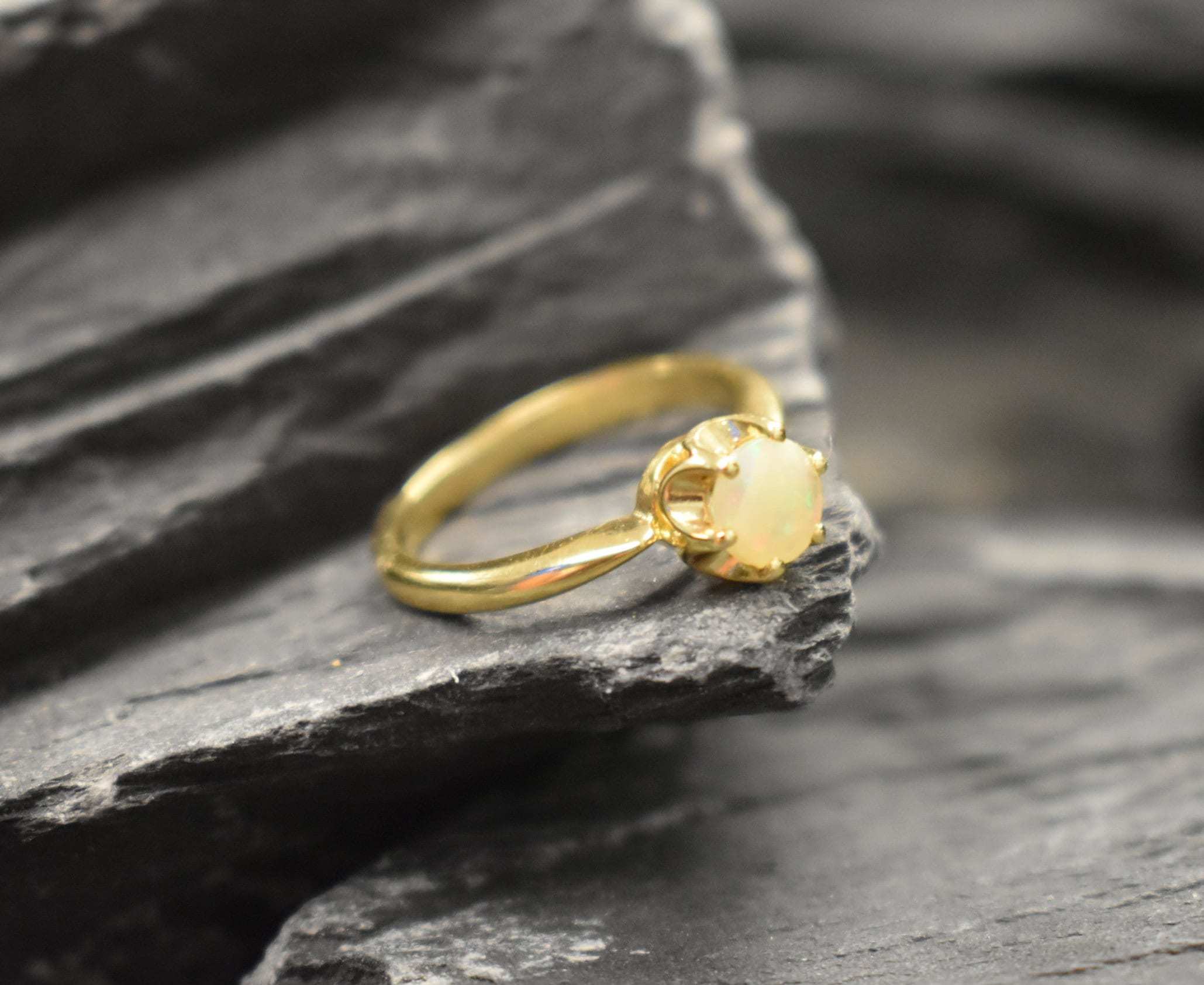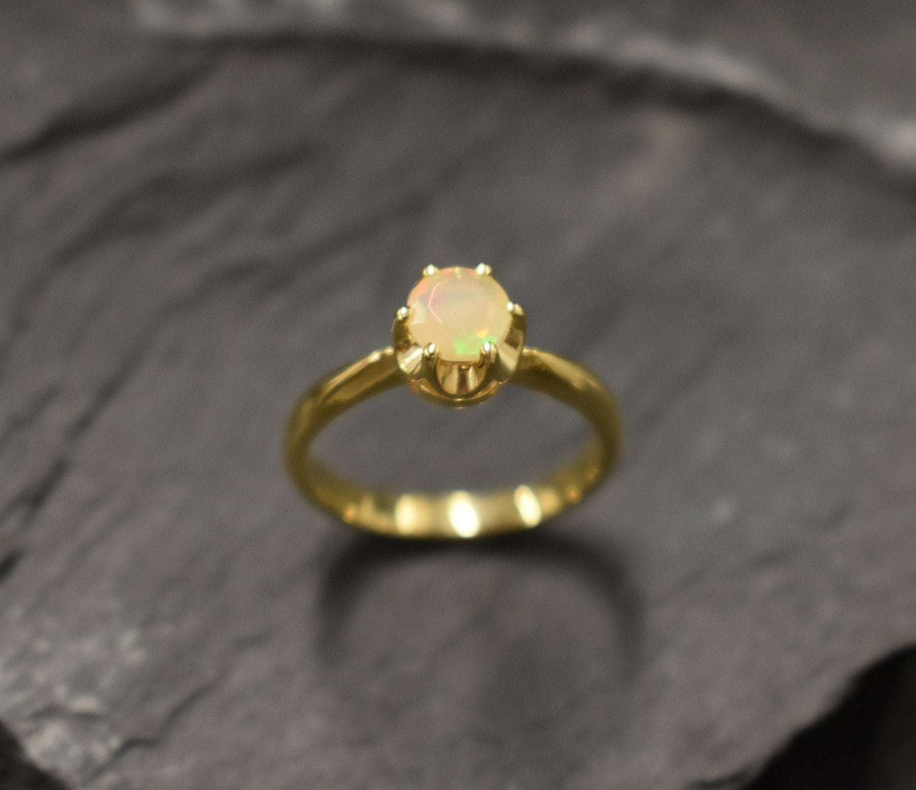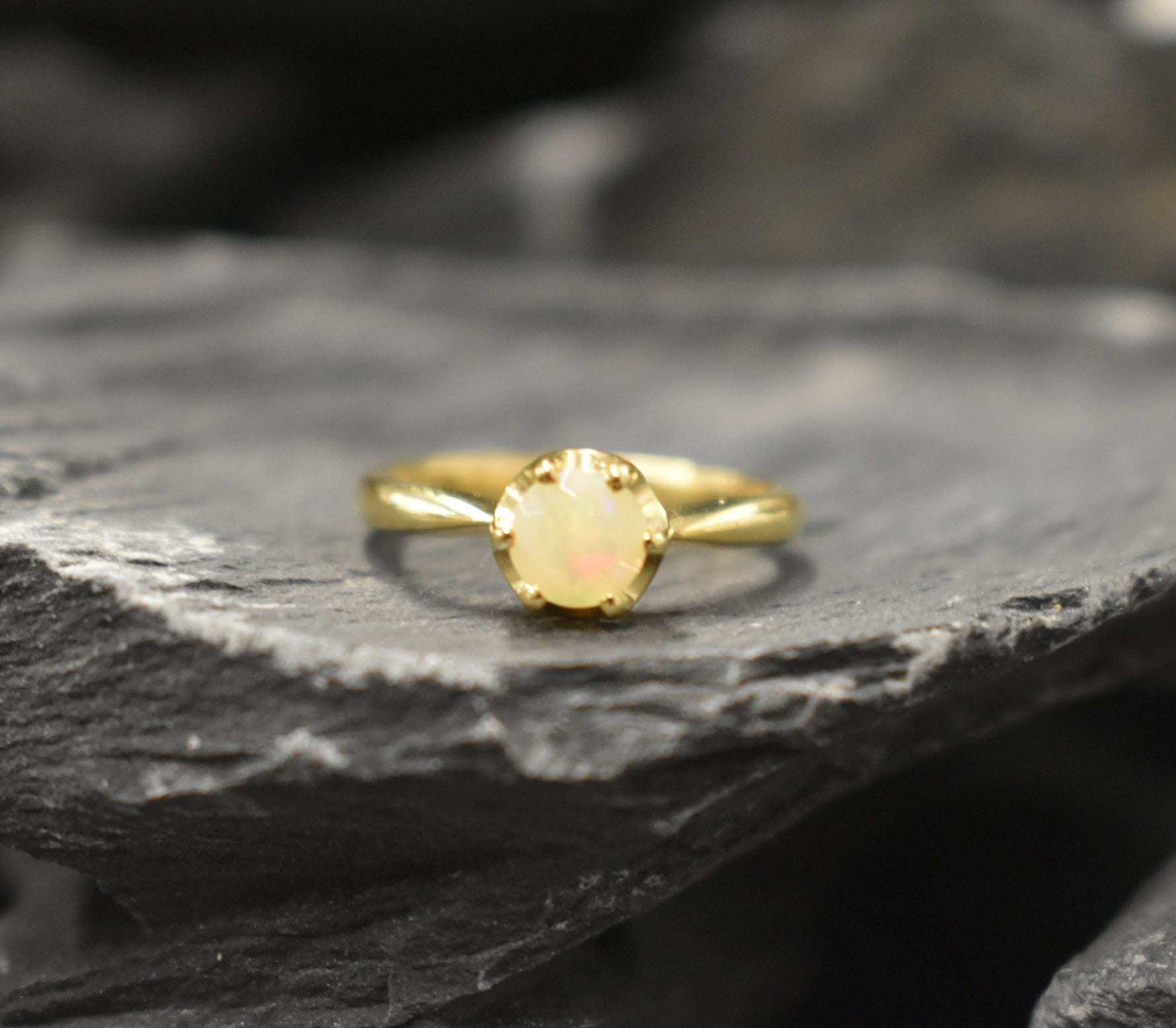 Opal Solitaire Gold Ring - Dainty Opal Ring - Opal Promise Ring