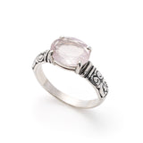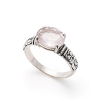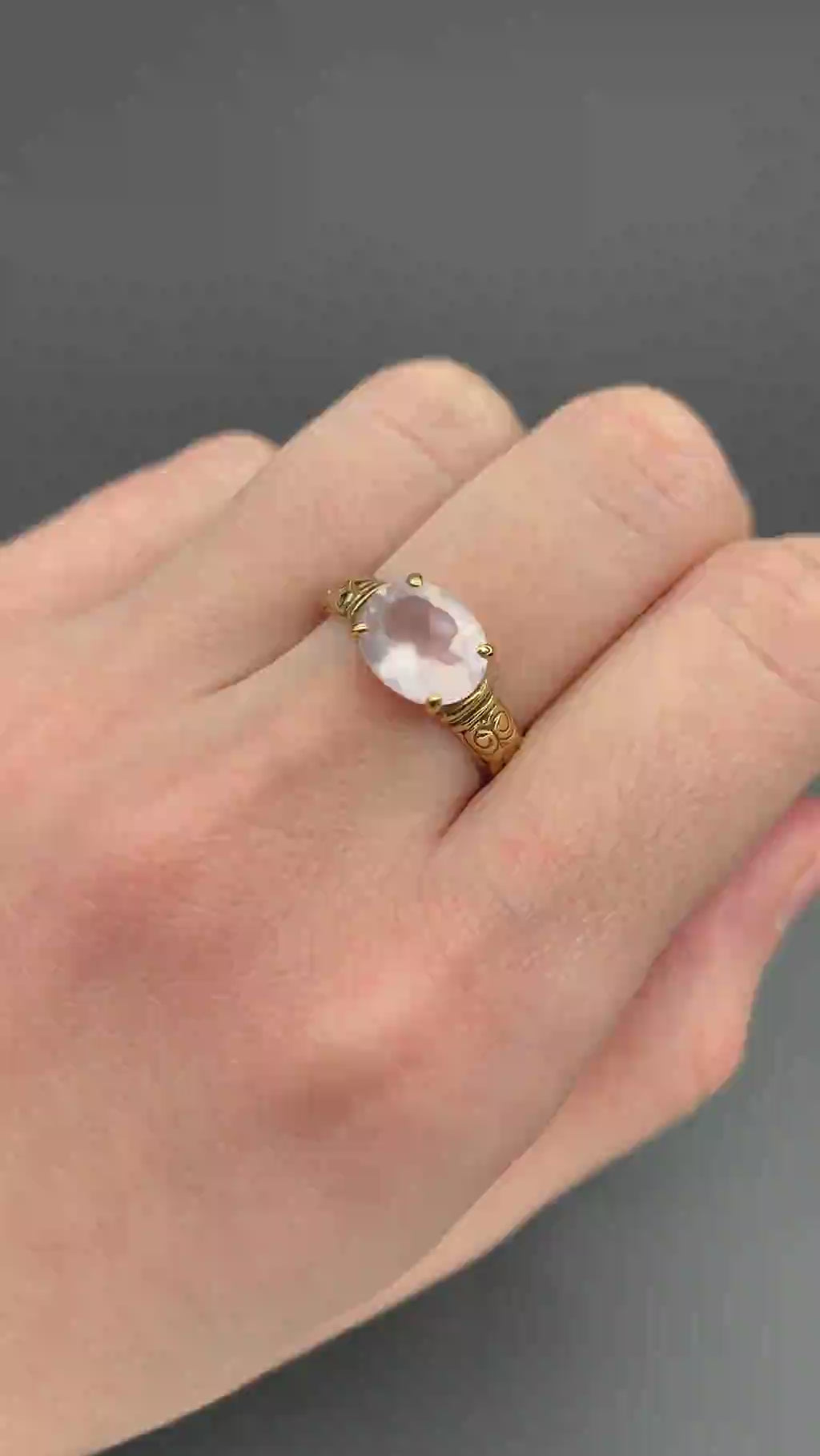 Gold Quartz Ring set with Natural Rose Quartz in a flawless diamond Cut & lovely pale pink color at 10x8mm (3 Cts) from Brazil.