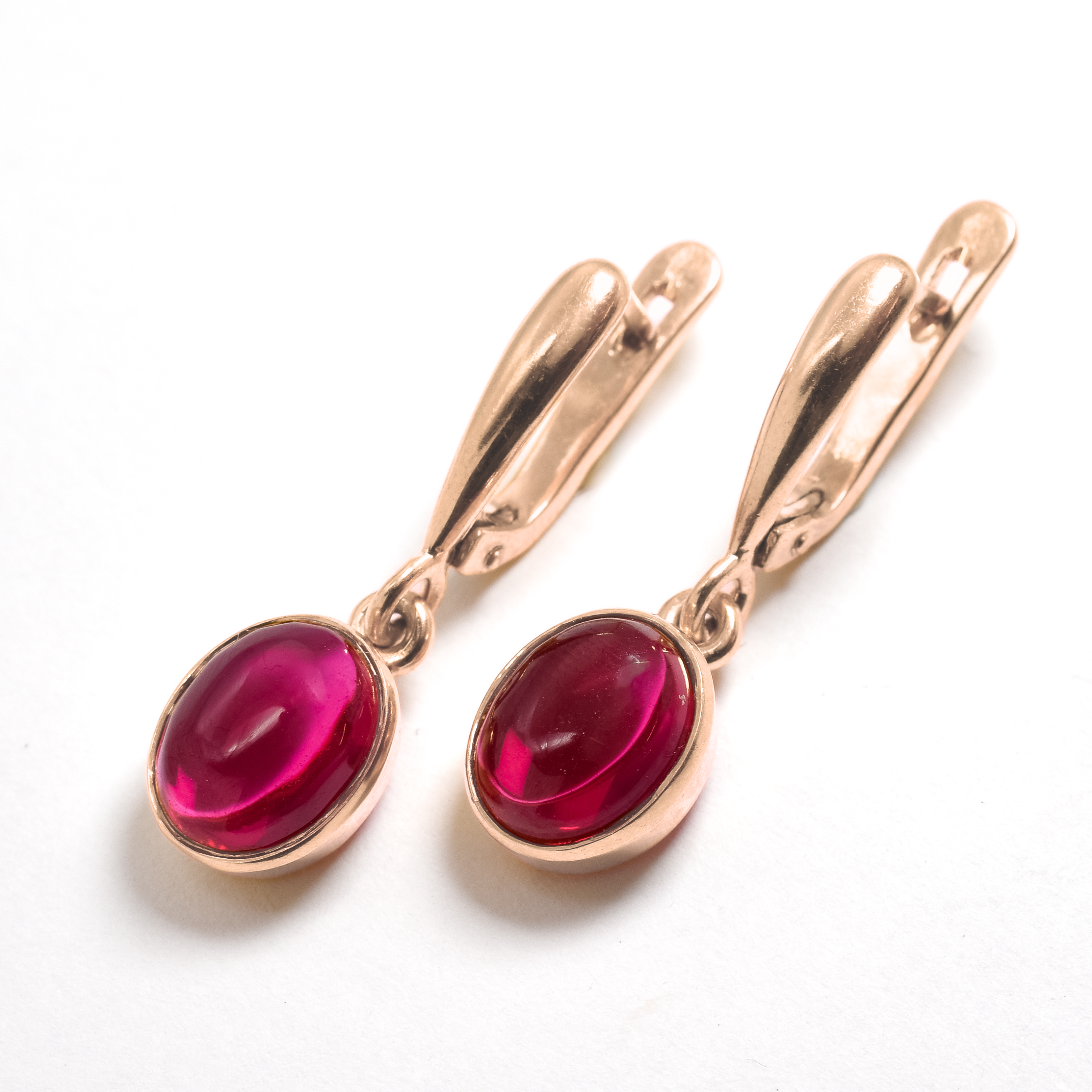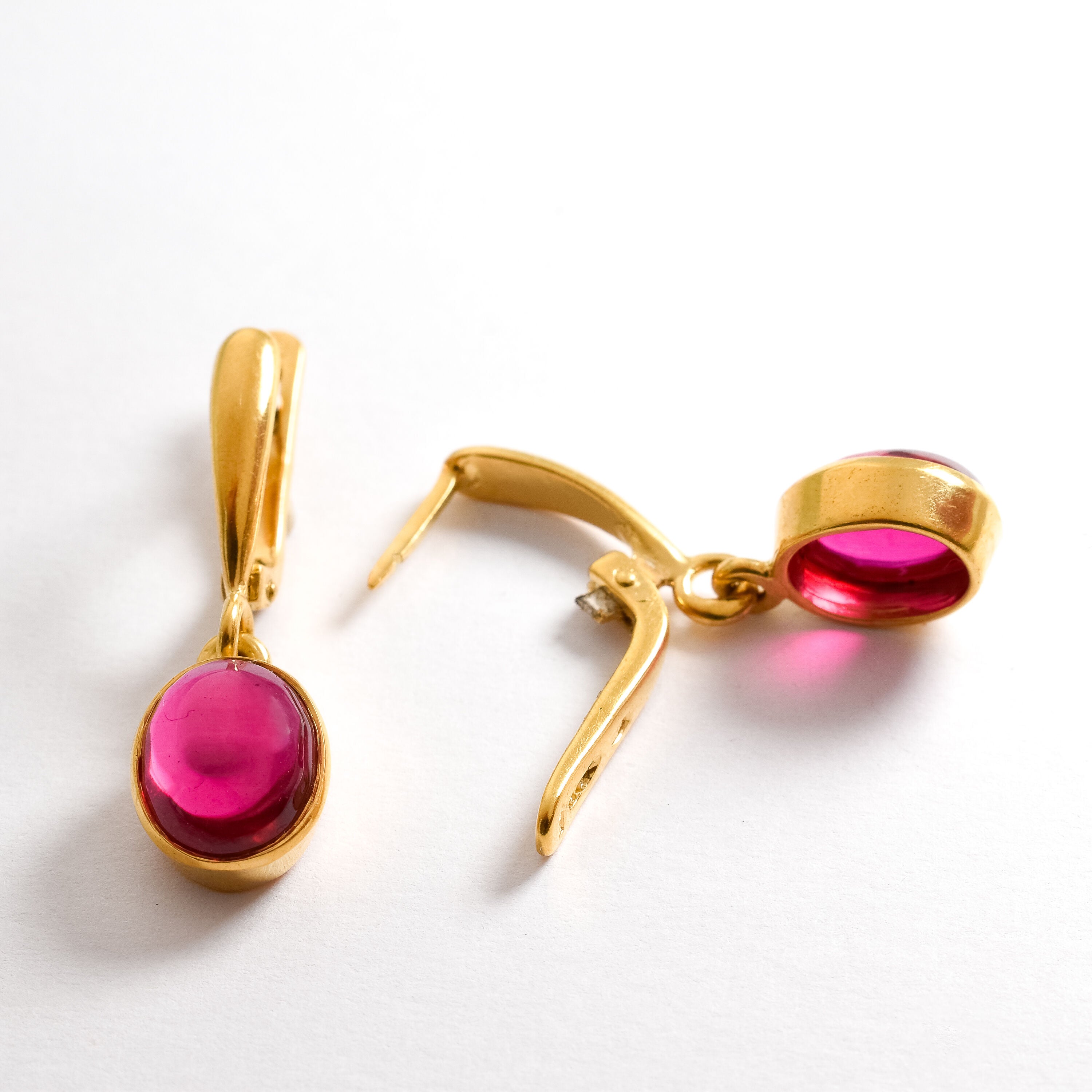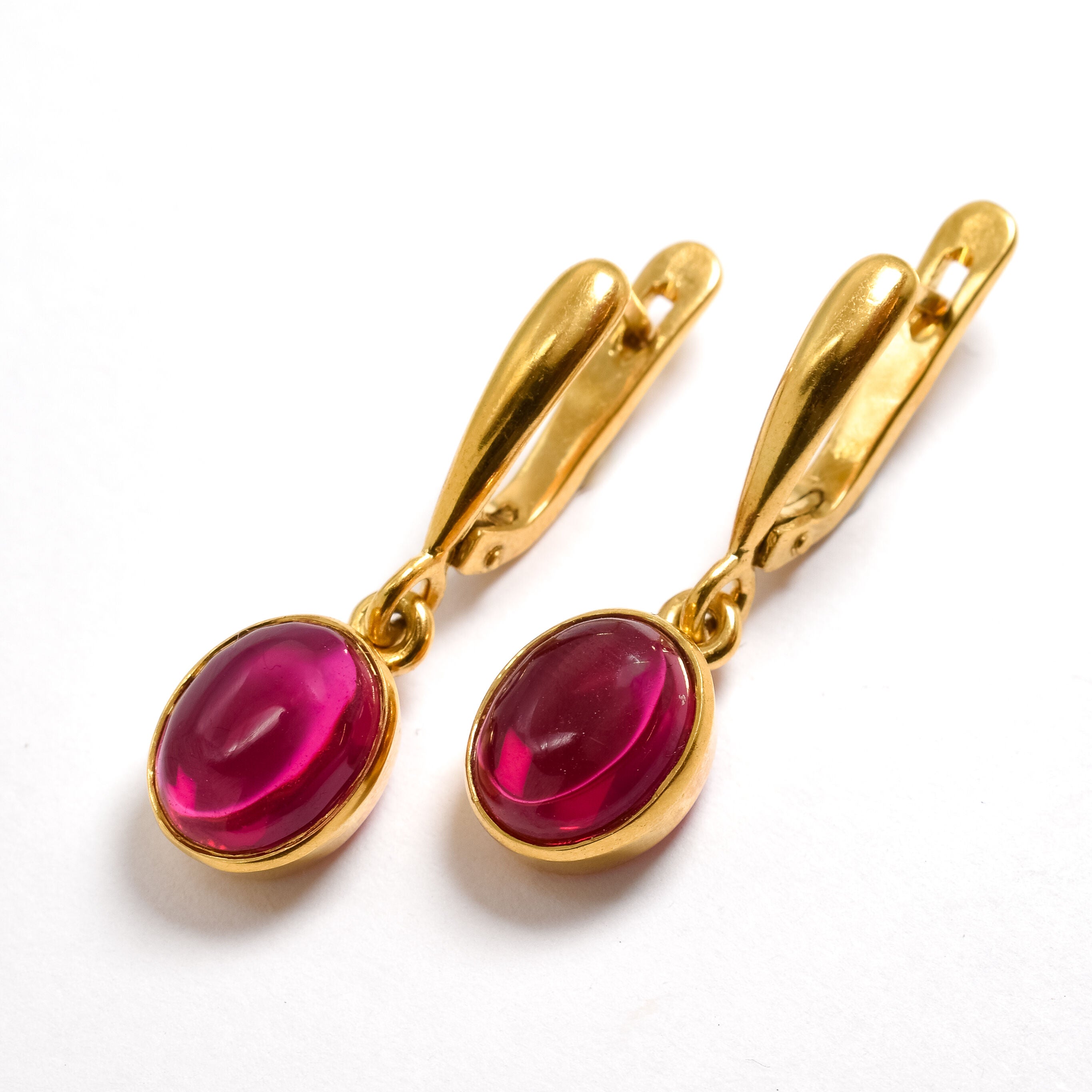 Chic 18k Gold Vermeil Earrings with an Oval Natural Ruby, perfect for expressing elegance and love on special occasions.