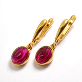 Gold Ruby Earrings - Red Oval Earrings - Vintage Dangling Earrings