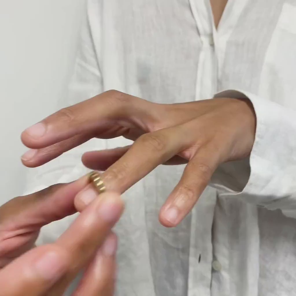 The easiest at-home method to measure your ring size is to simply order a plastic ring sizer - it looks like a zip-tie and costs just a few dollars. Another option might be to simply pop into a local jewelry store where they can help you determine your size as well. However we would always recommend to stay away from string, tape, ruler or paper measurements at home - these are inaccurate and will most likely cause more hassle with the need of resizing your ring.