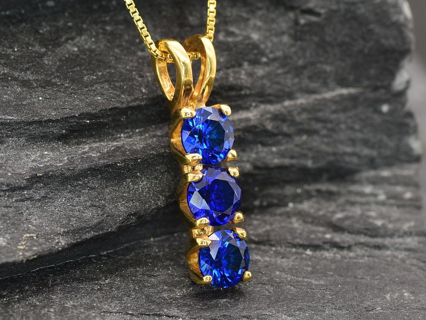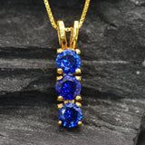 Gold Sapphire Pendant - Blue Trilogy Necklace - Three Stone Sapphire Pendant