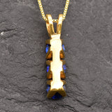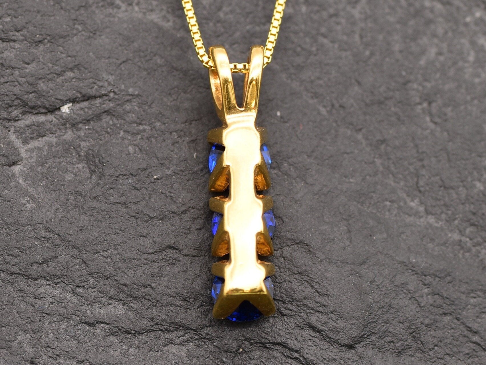 Gold Sapphire Pendant set with Created Sapphire in a perfect diamond cut & blue color in a flawless clarity, at 5mm each (1.5 Cts all).