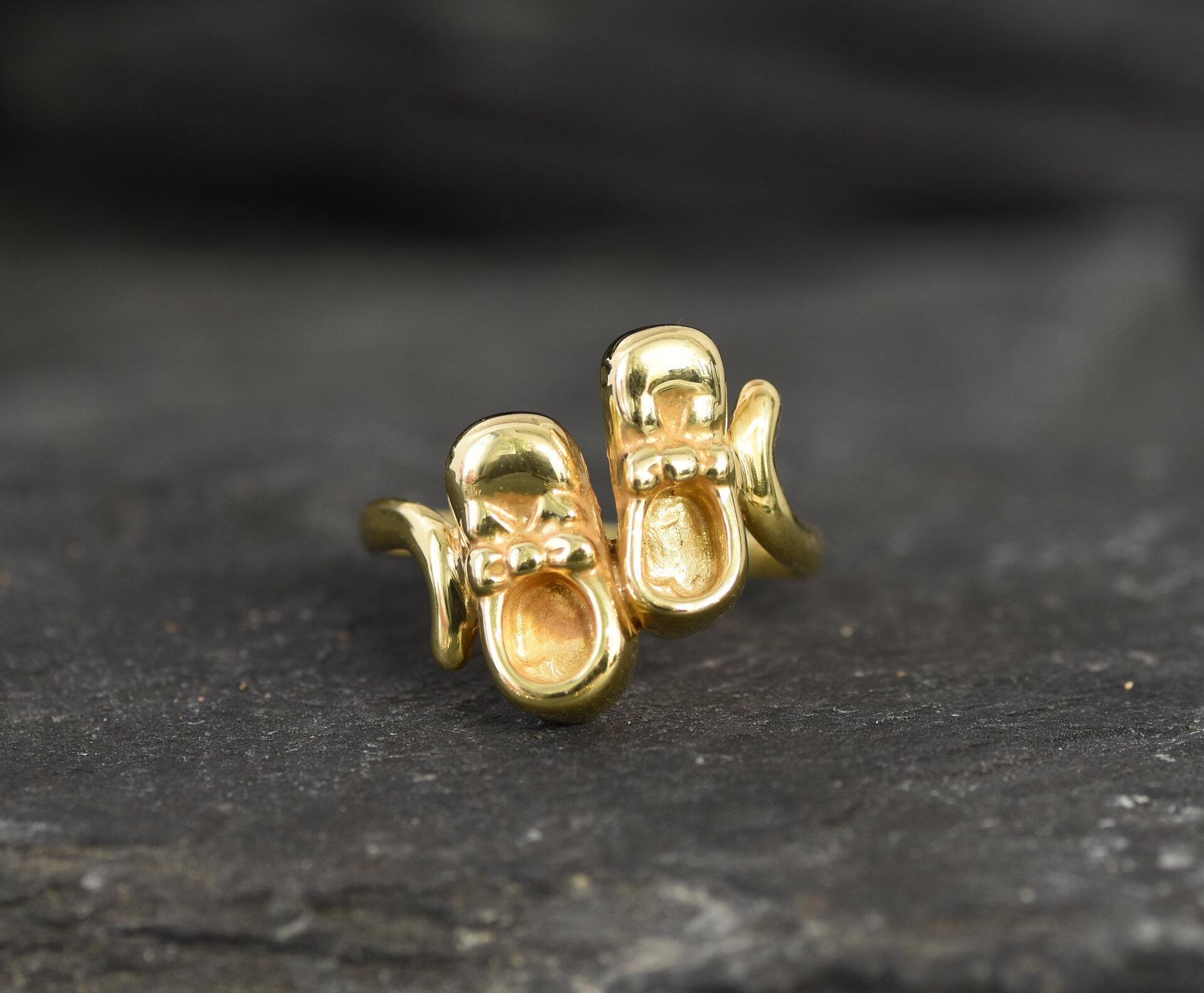 Gold Baby Shoes Ring - Mom Charm Ring, Cute Gold Ring