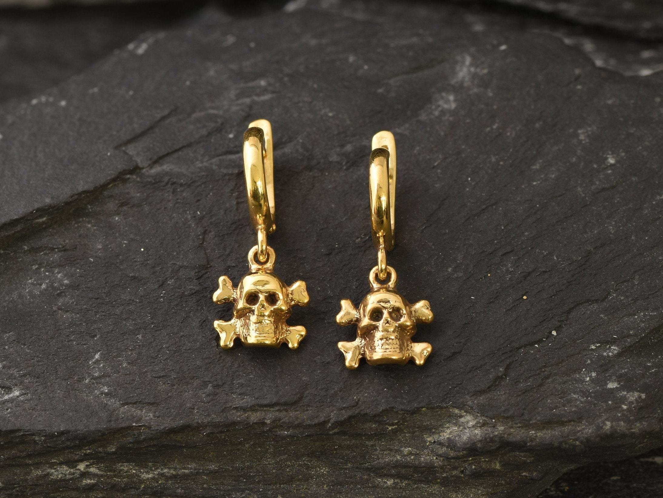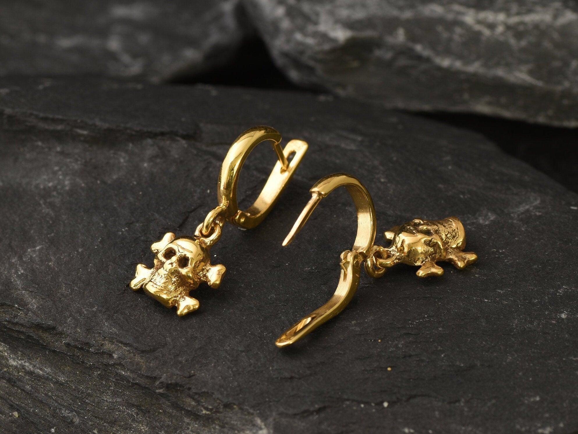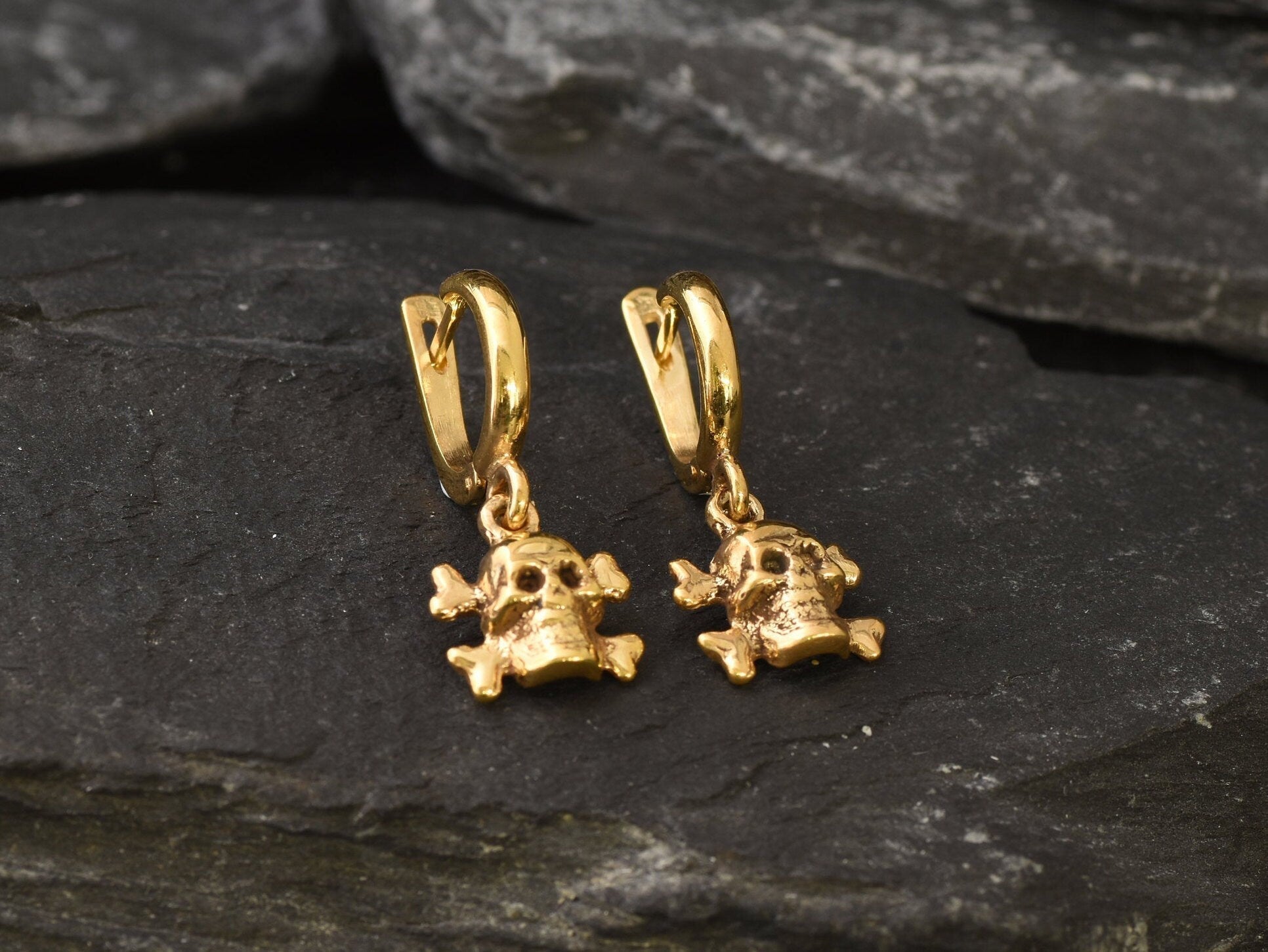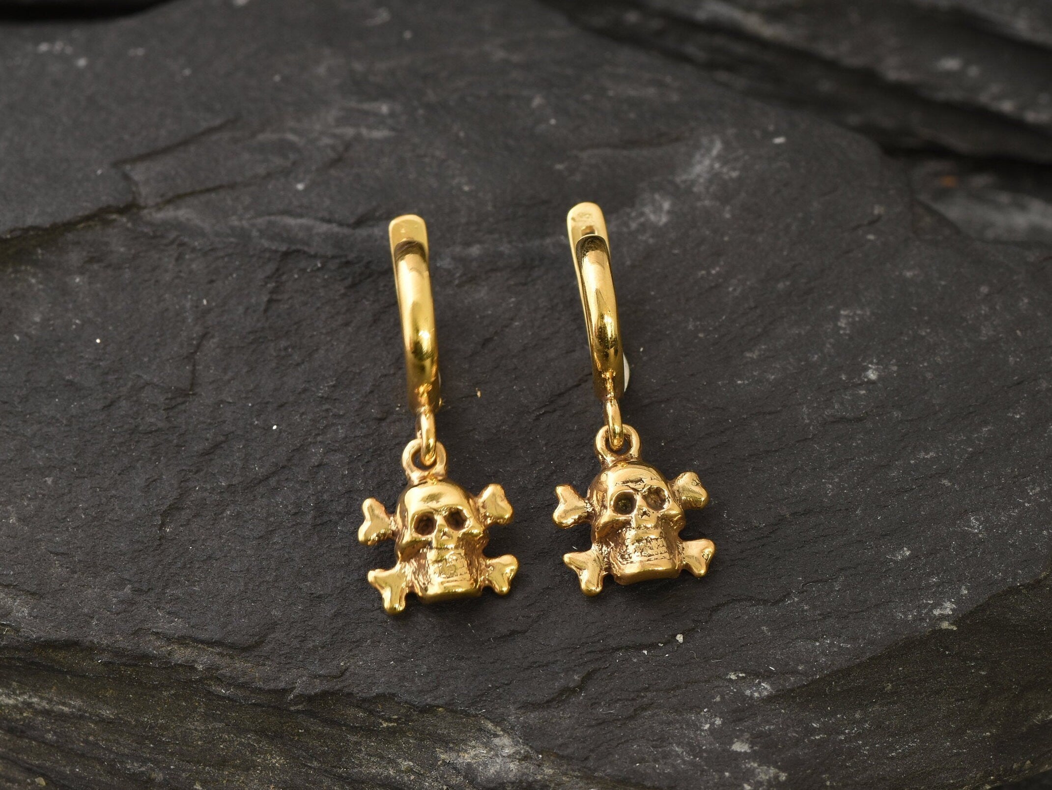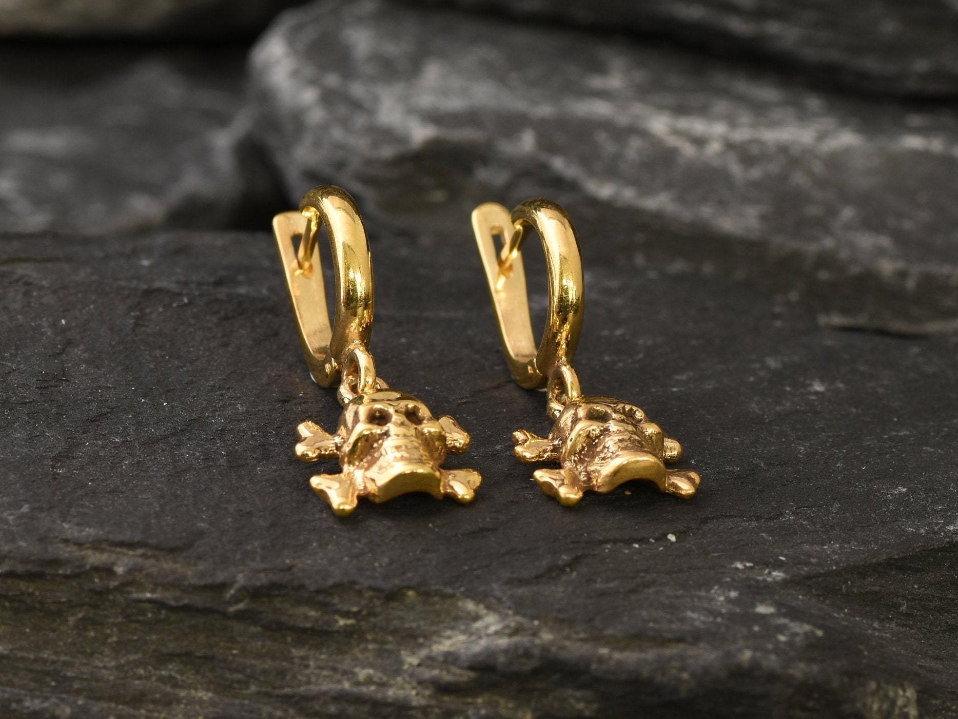 Gold Skull Earrings, Vintage Earrings, Gothic Earrings, Artisan Earrings, Antique Earrings, Skeleton Earrings, Gold Vermeil, 18K Gold Plated