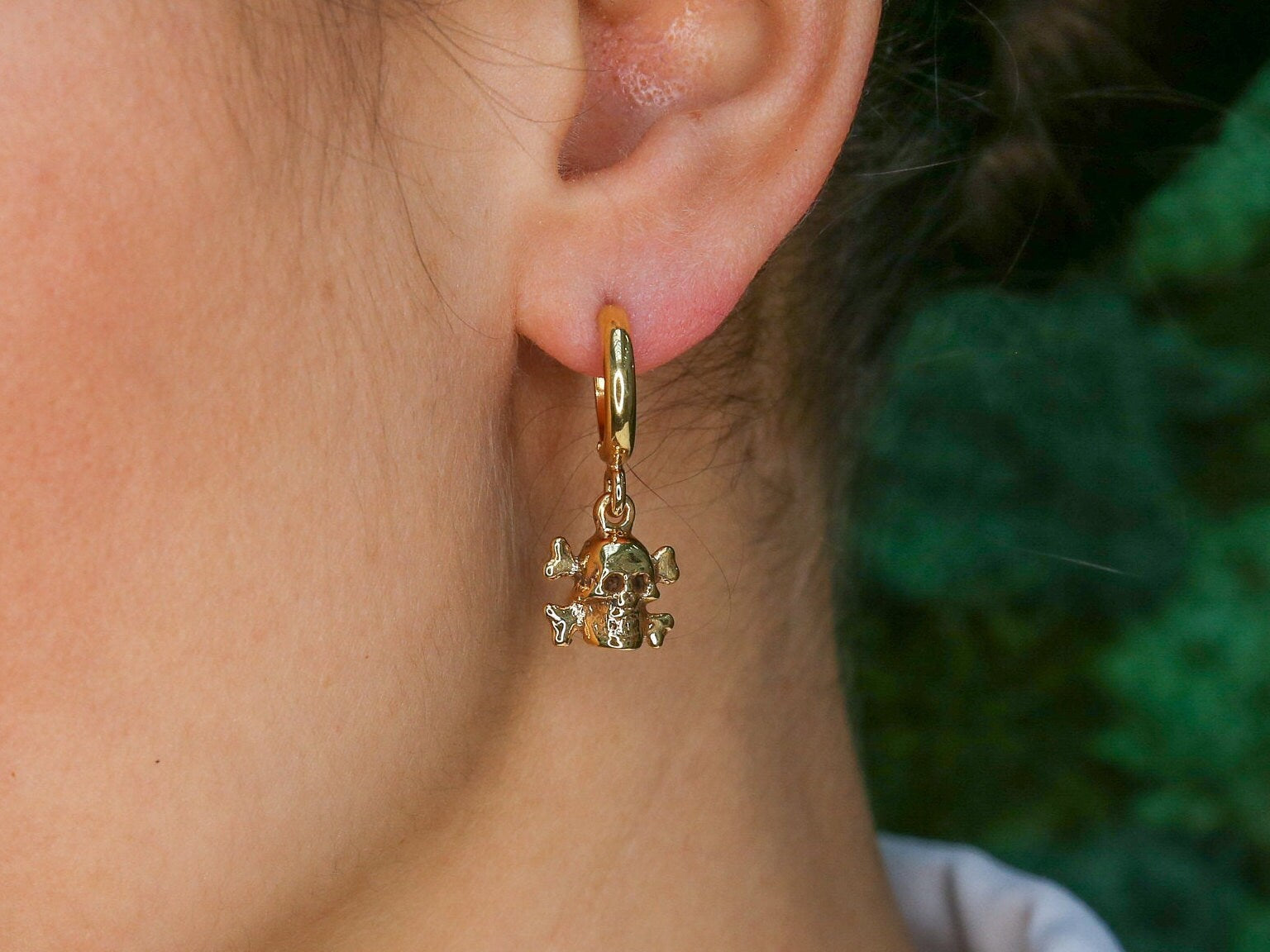 Dangling Skull Earrings made of Gold Vermeil: 18k Gold over Solid 925 Sterling Silver ☞ made to last.
