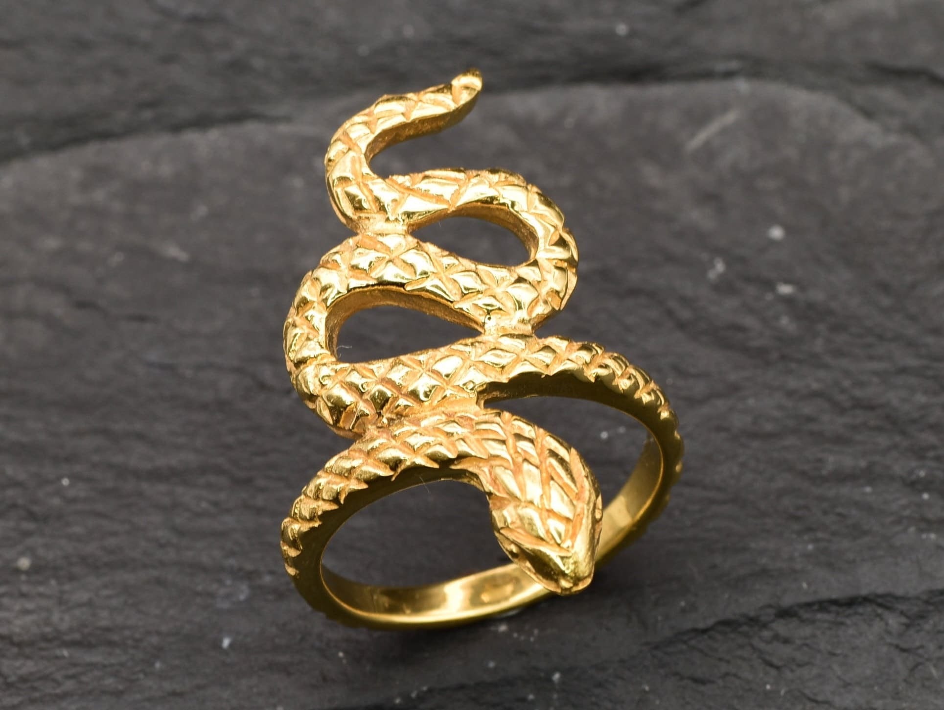 Gold Snake Ring, Gold Statement Ring, Gold Serpent Ring, Snake Ring, Serpent Ring, Animal Ring, Vintage Ring, Fashion Ring, Vermeil Ring