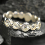White Topaz Band, Diamond Band, Solid Silver Band, Stackable Band, Dainty Ring, Bohemian Band, Everyday Wear Band, Wedding Band, Boho Ring