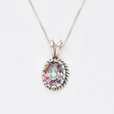 Gold Topaz Pendant - Natural Mystic Topaz Necklace - Purple Oval Necklace