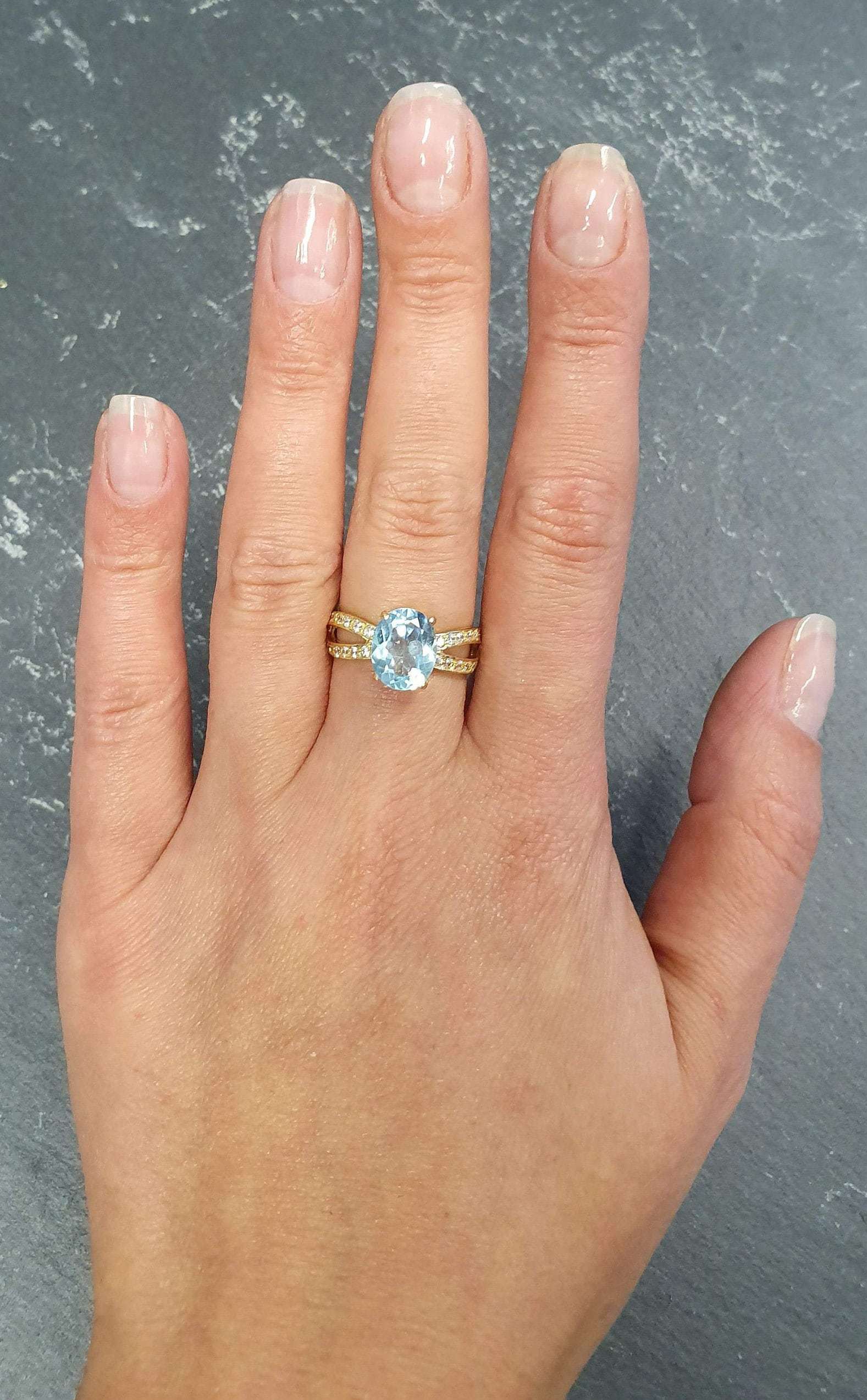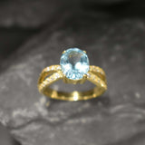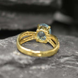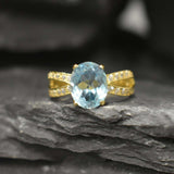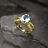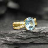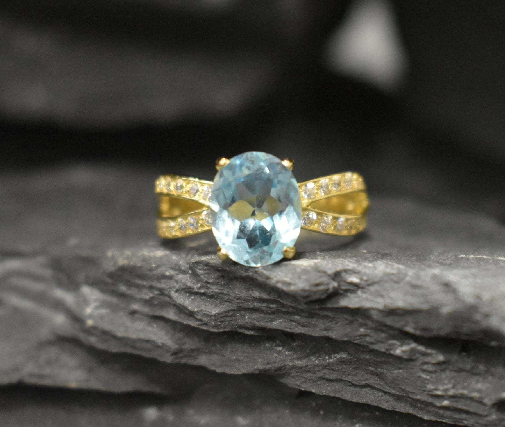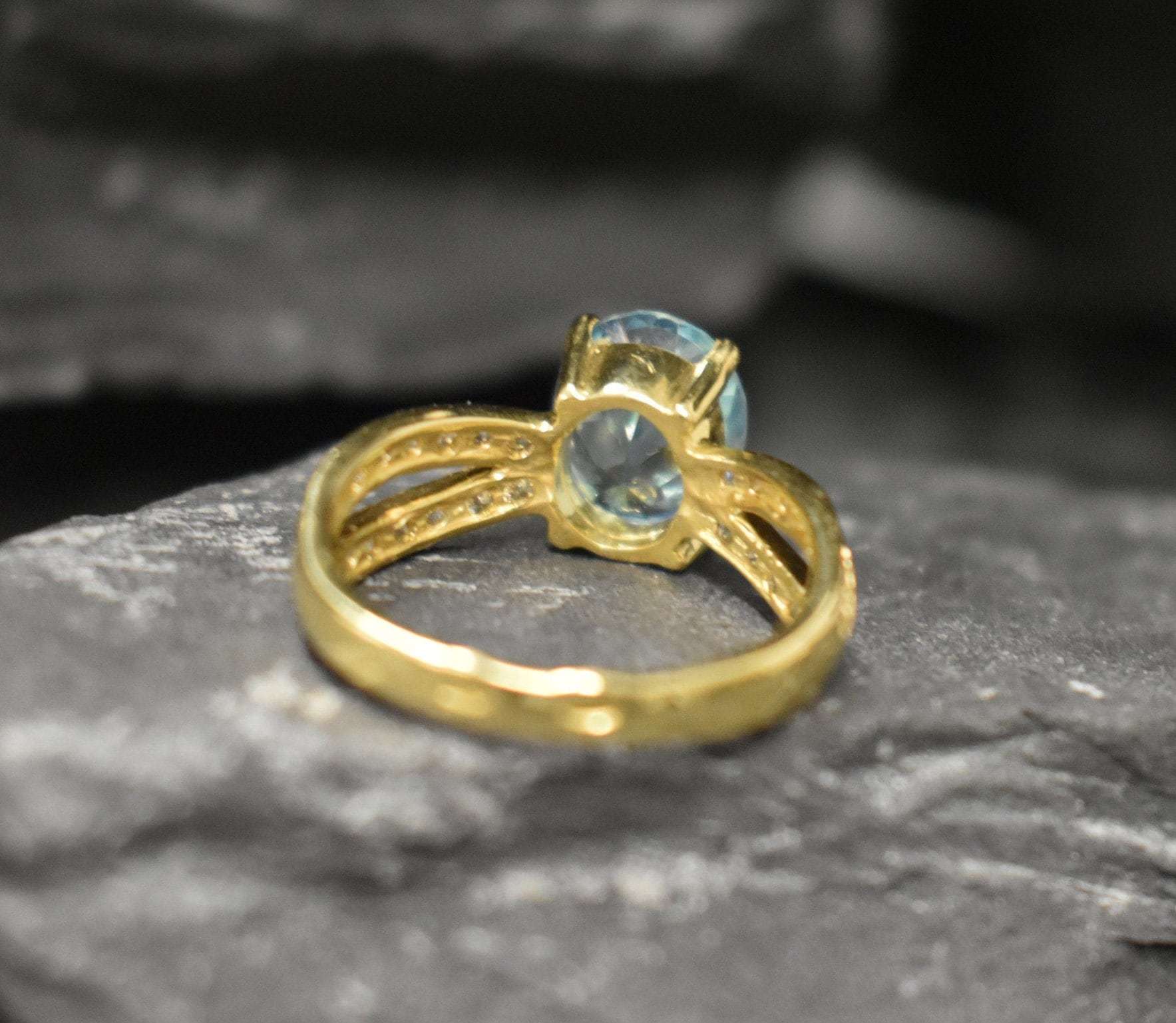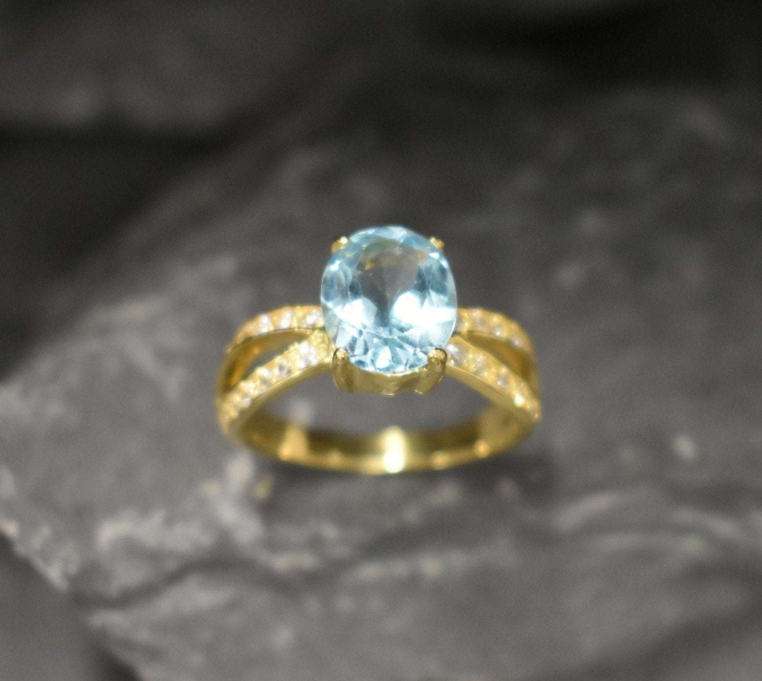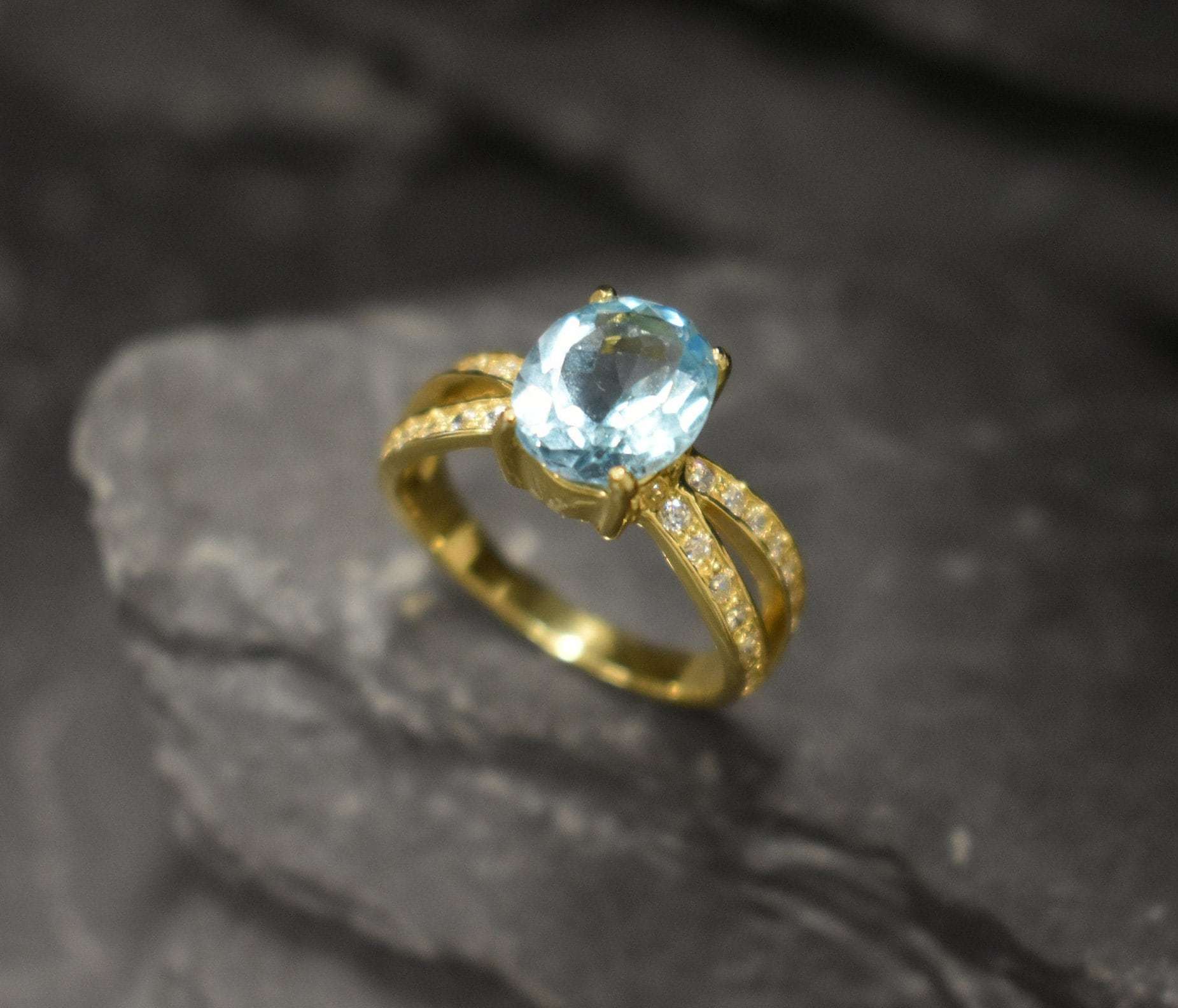 Vintage Blue Topaz Ring - Blue Gem Gold Ring - December Birthstone Ring