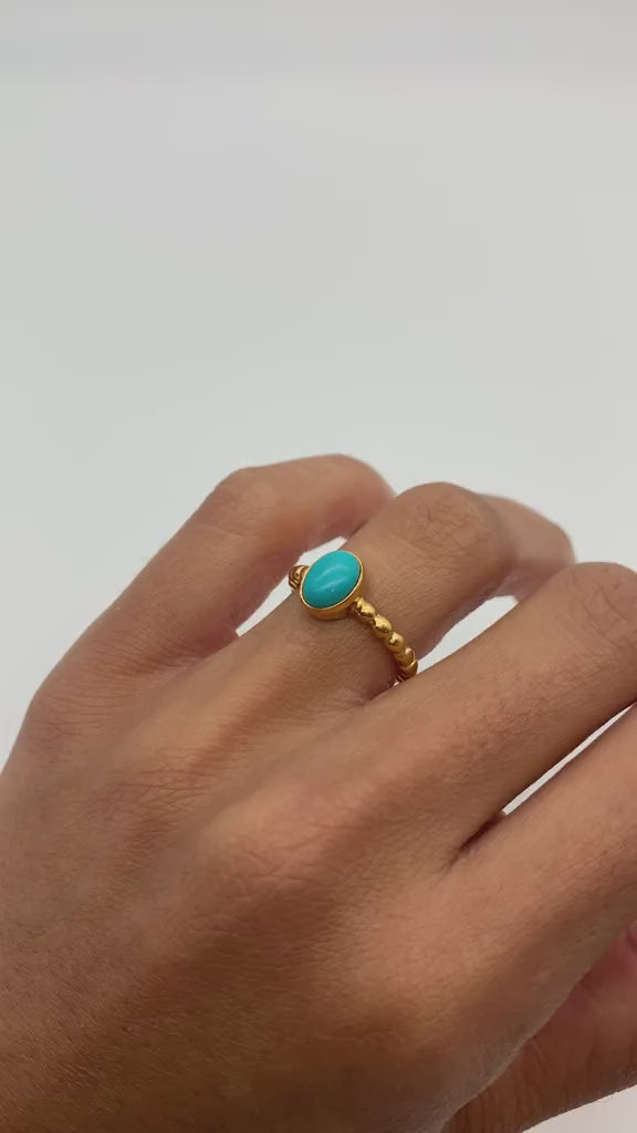 Gold Turquoise Ring, Natural Turquoise, Dainty Blue Ring, Stackable Ring, Gold Plated Ring, Bubble Band, December Birthstone, Gold Vermeil