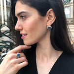 Victorian Earrings, Kyanite Earrings, Stud Earrings, Blue Earrings, Large Studs, Heavy Studs, Flower Earrings, Solid Silver Earrings, Opal