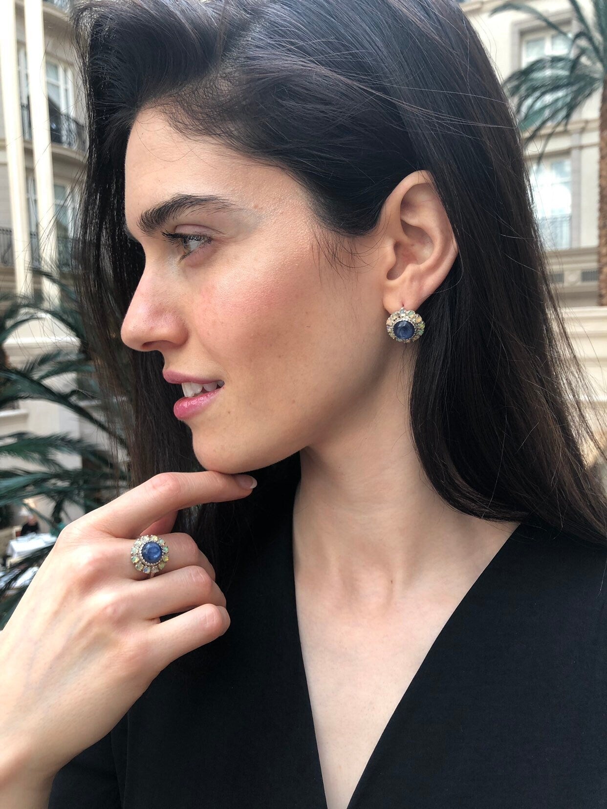 Victorian Earrings, Kyanite Earrings, Stud Earrings, Blue Earrings, Large Studs, Heavy Studs, Flower Earrings, Solid Silver Earrings, Opal(1)