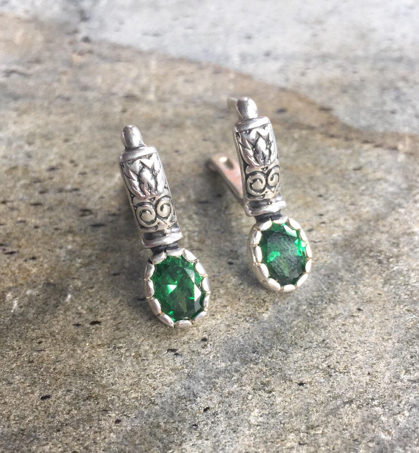 Green Emerald Earrings - Vintage Drop Earrings - Gold Tribal Earrings
