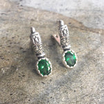 Green Emerald Earrings set with a Created Emerald in a perfect diamond cut, flawless clarity & color, at 8x6mm each (4 Cts a pair).