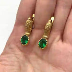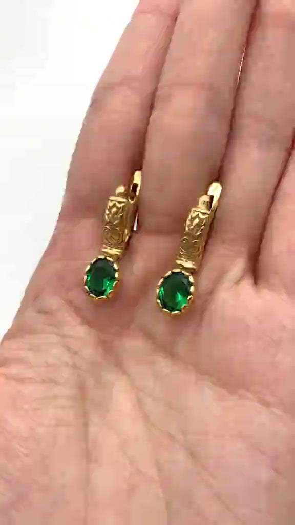 Stunning 18k Gold Vermeil Emerald Earrings with prong-set oval emeralds, ideal for everyday elegance and May birthday gifts.