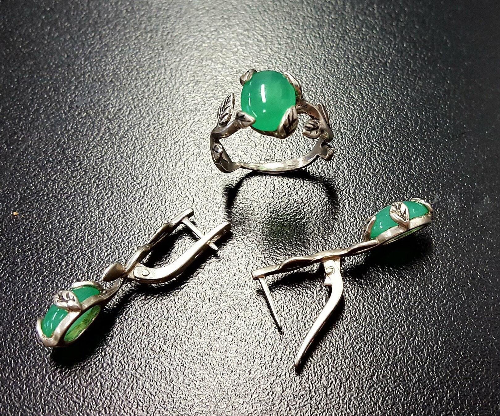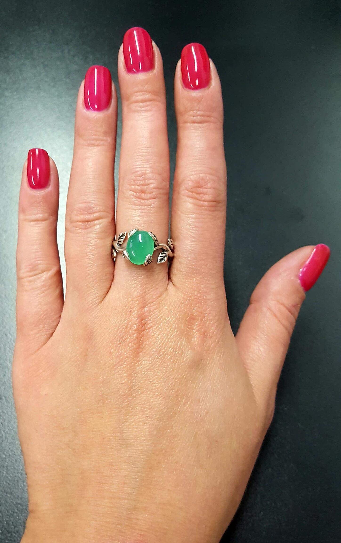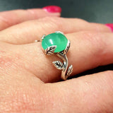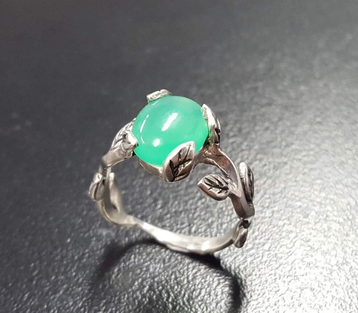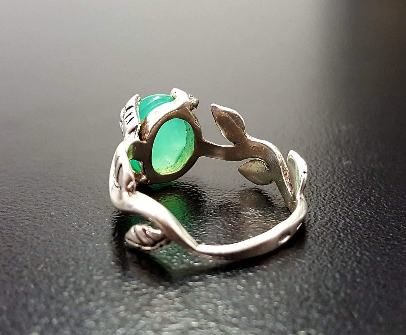 Green Flower Ring, Chrysoprase Ring, Natural Chrysoprase, May Ring, Silver Leaf Ring, May Birthstone, Green Leaf Ring, Green Vintage Ring(1)
