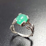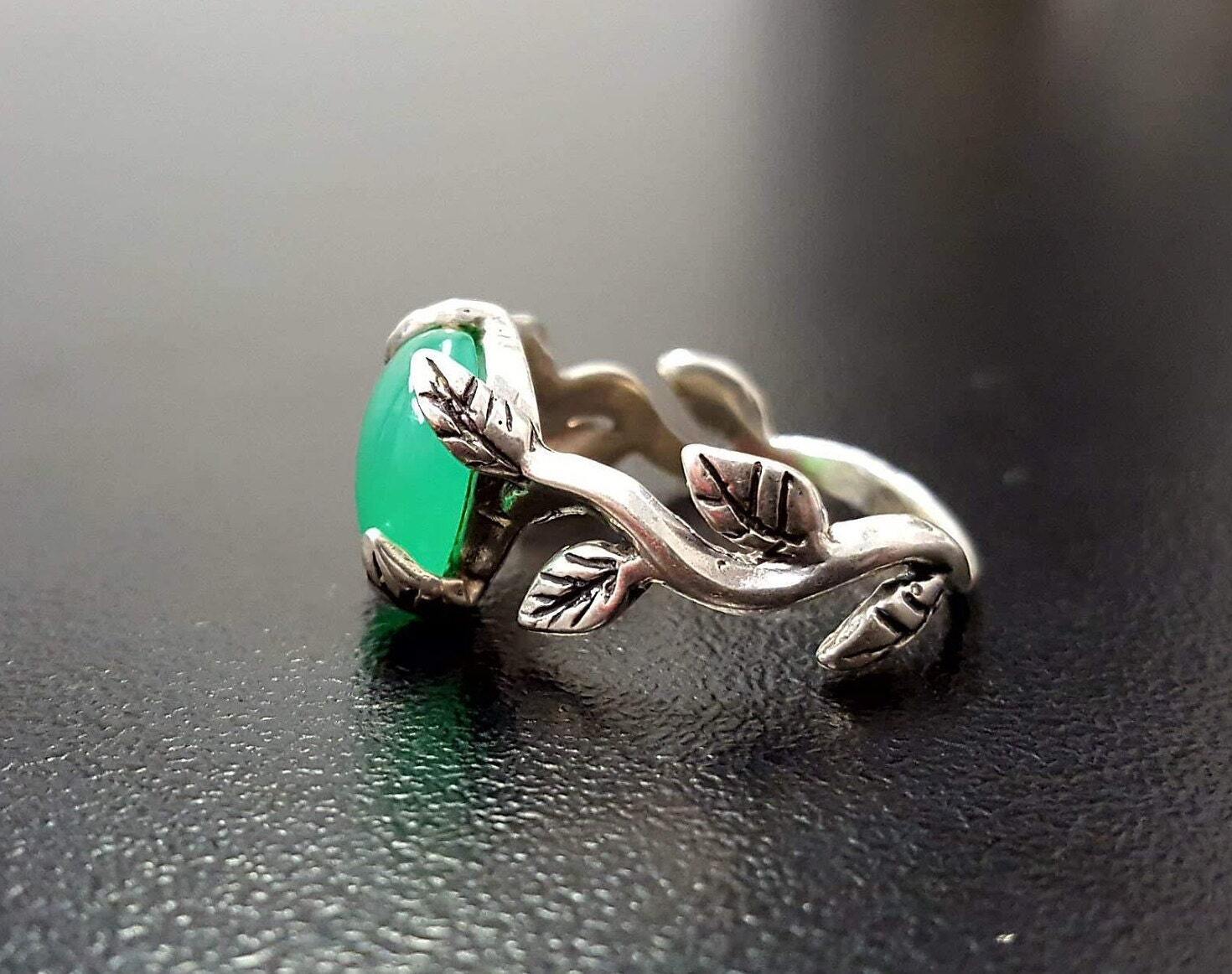 Leaf Chrysoprase Ring - Green Solitaire Ring - Vintage Leaf Ring