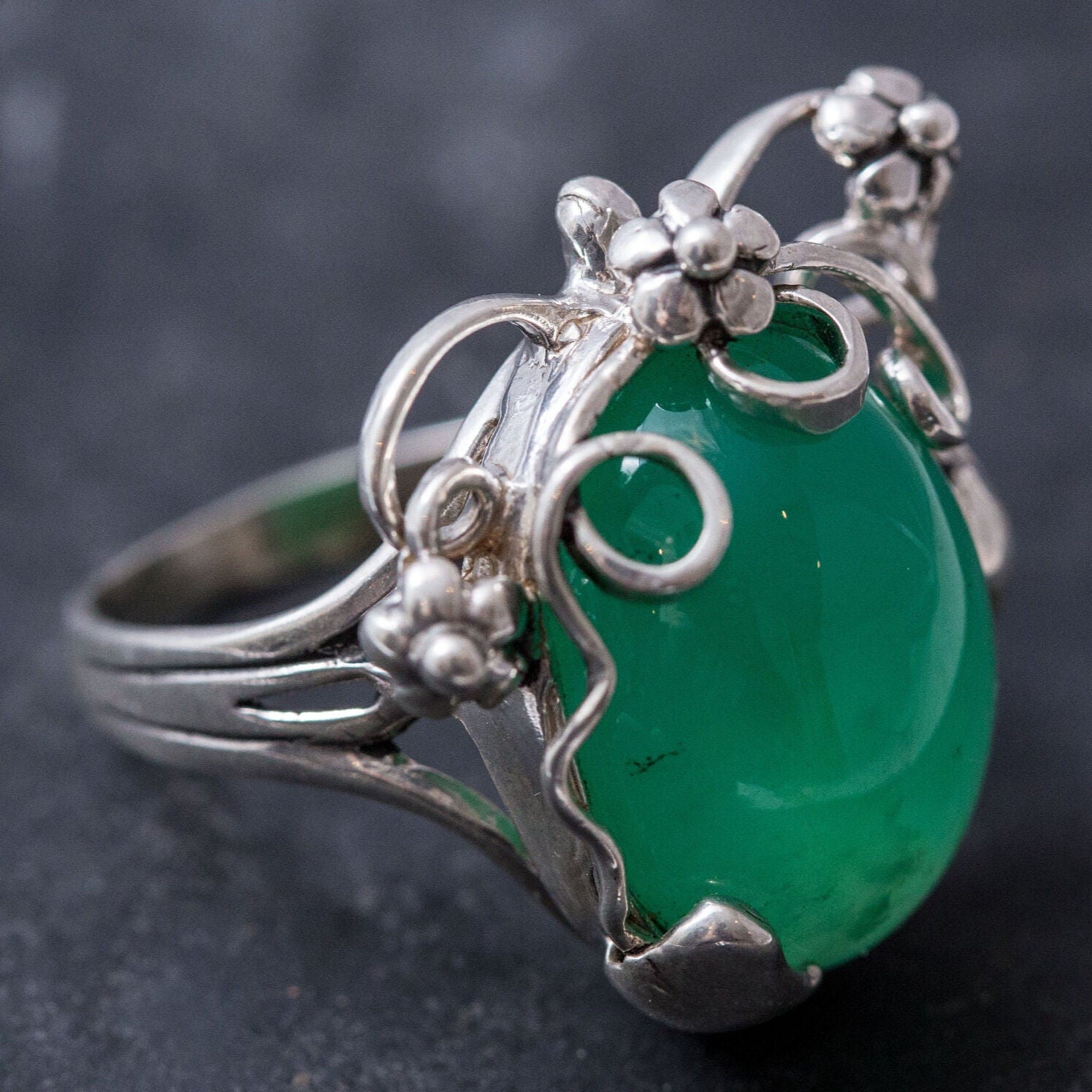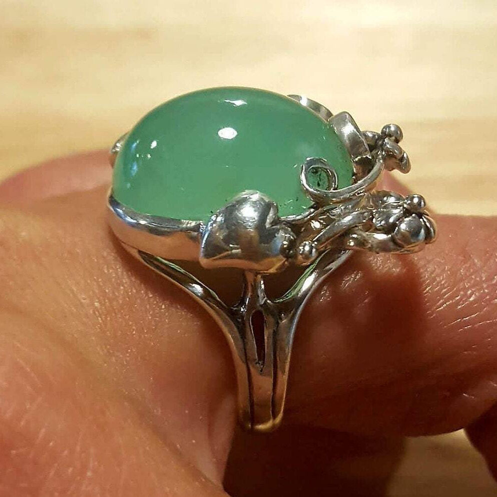 Green Leaf Ring, Chrysoprase Ring, Natural Chrysoprase, May Birthstone, Vintage Rings, Green Ring, Solid Silver Ring, May Ring, Chrysoprase