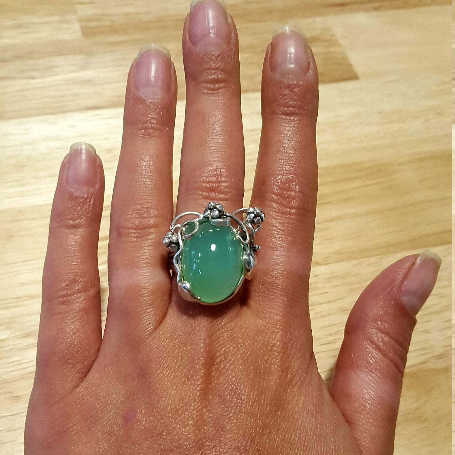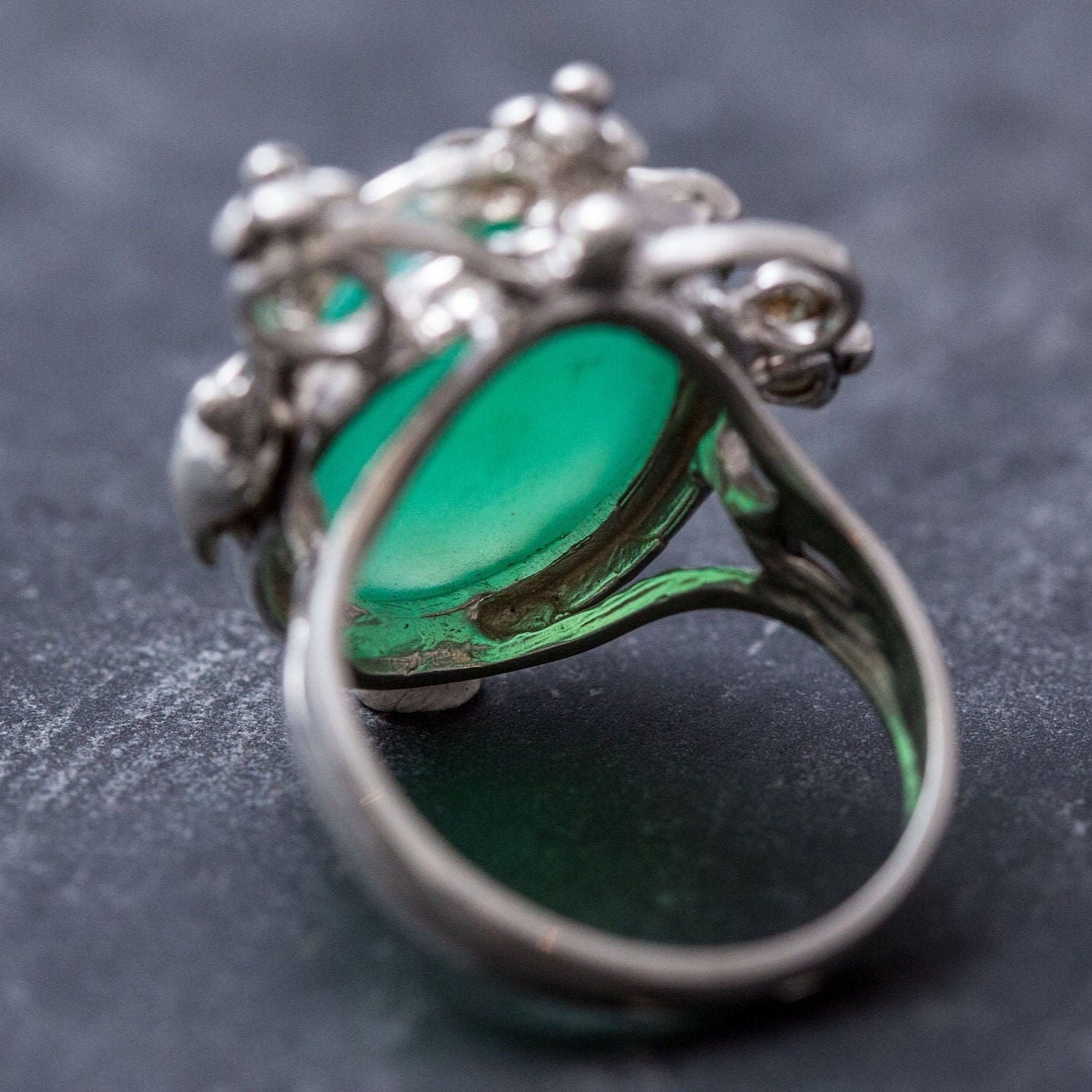 Chrysoprase Ring - Green Statement Ring - Chrysoprase Flower Ring