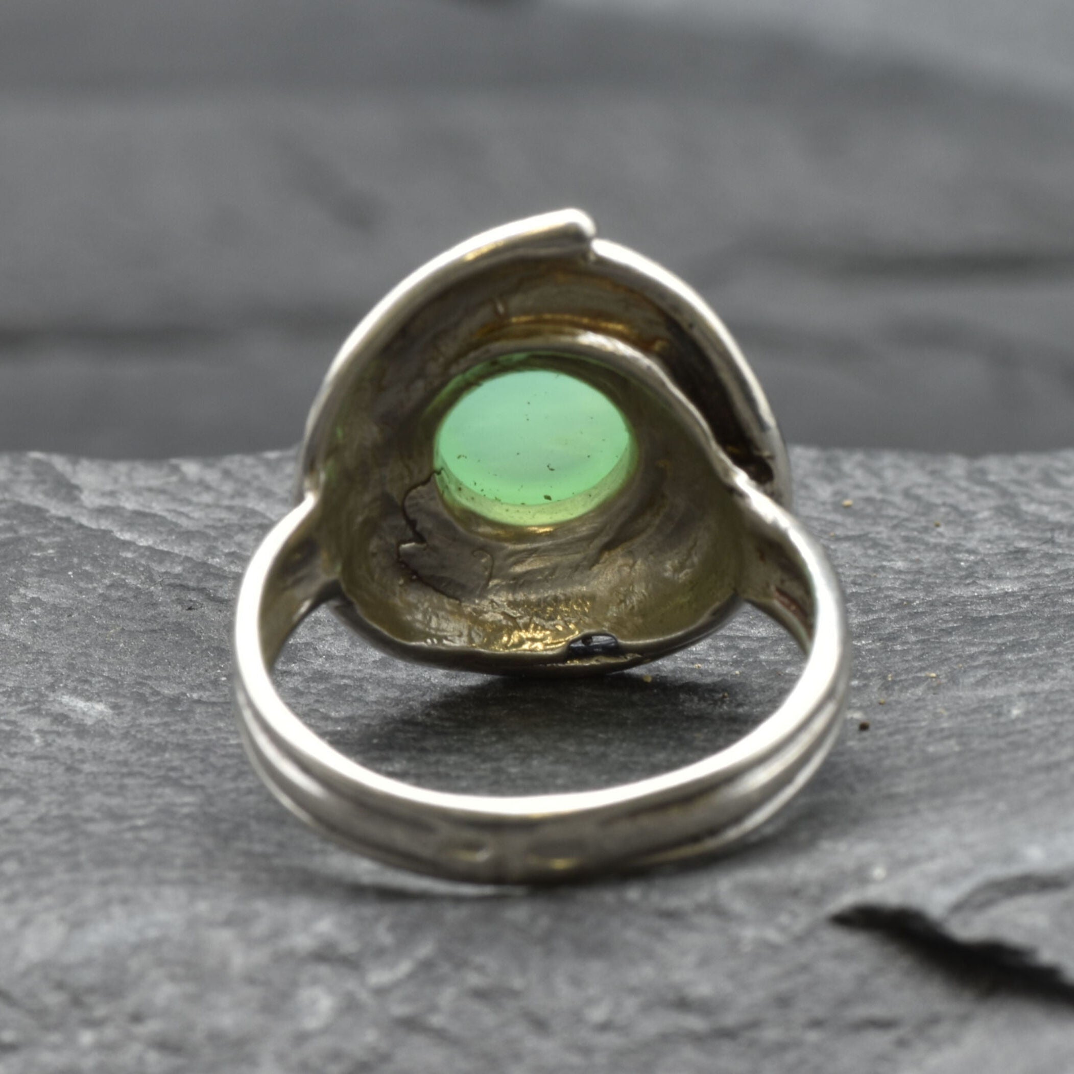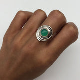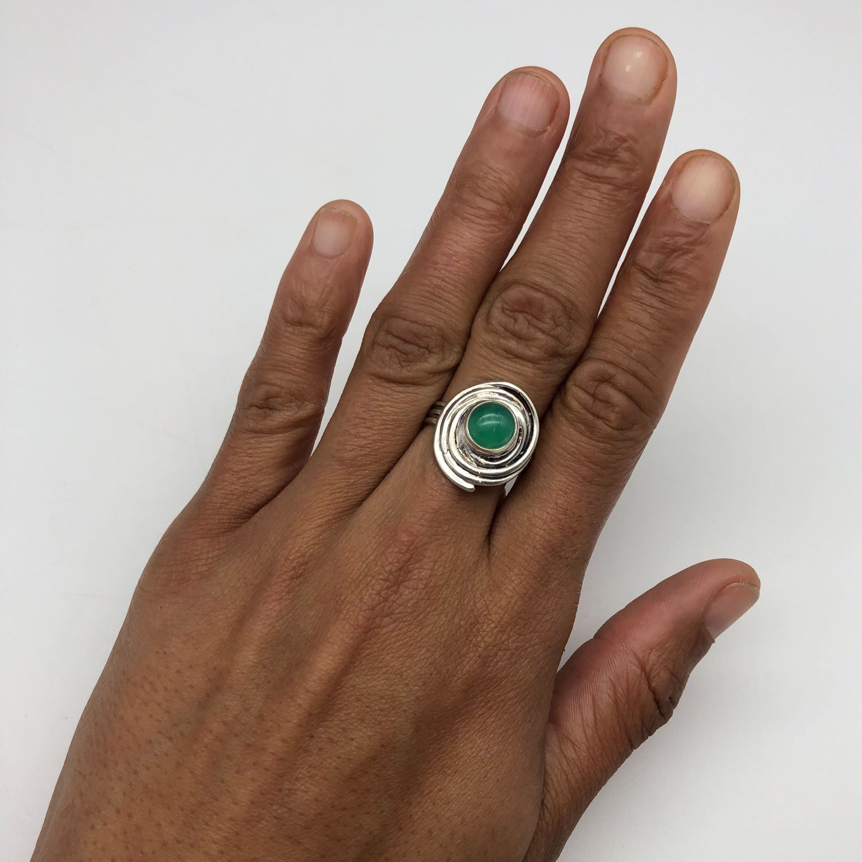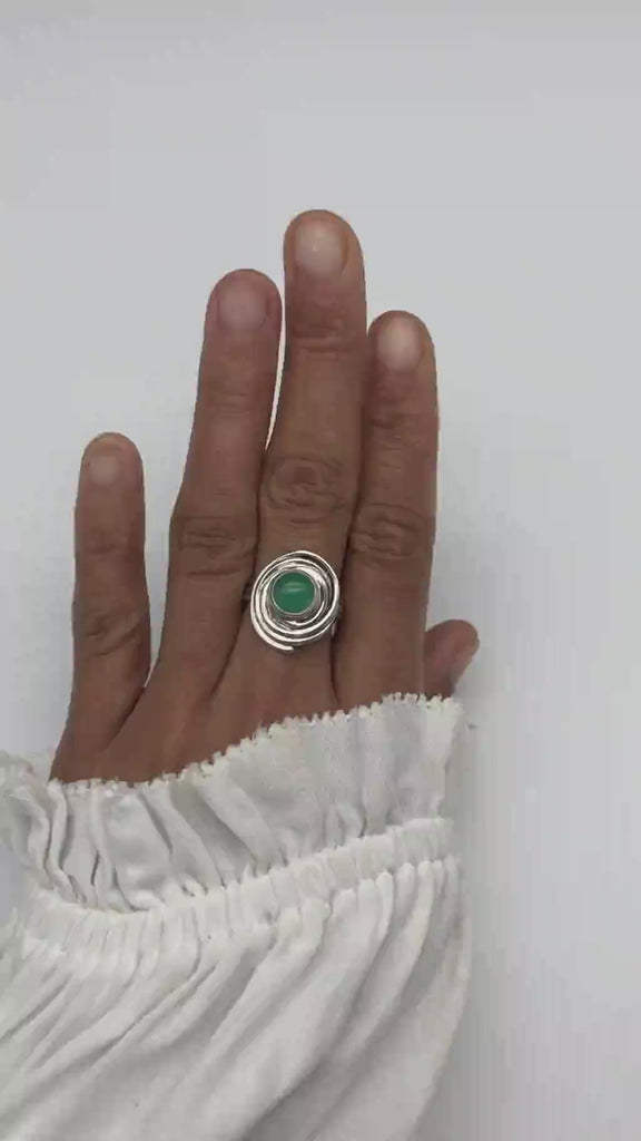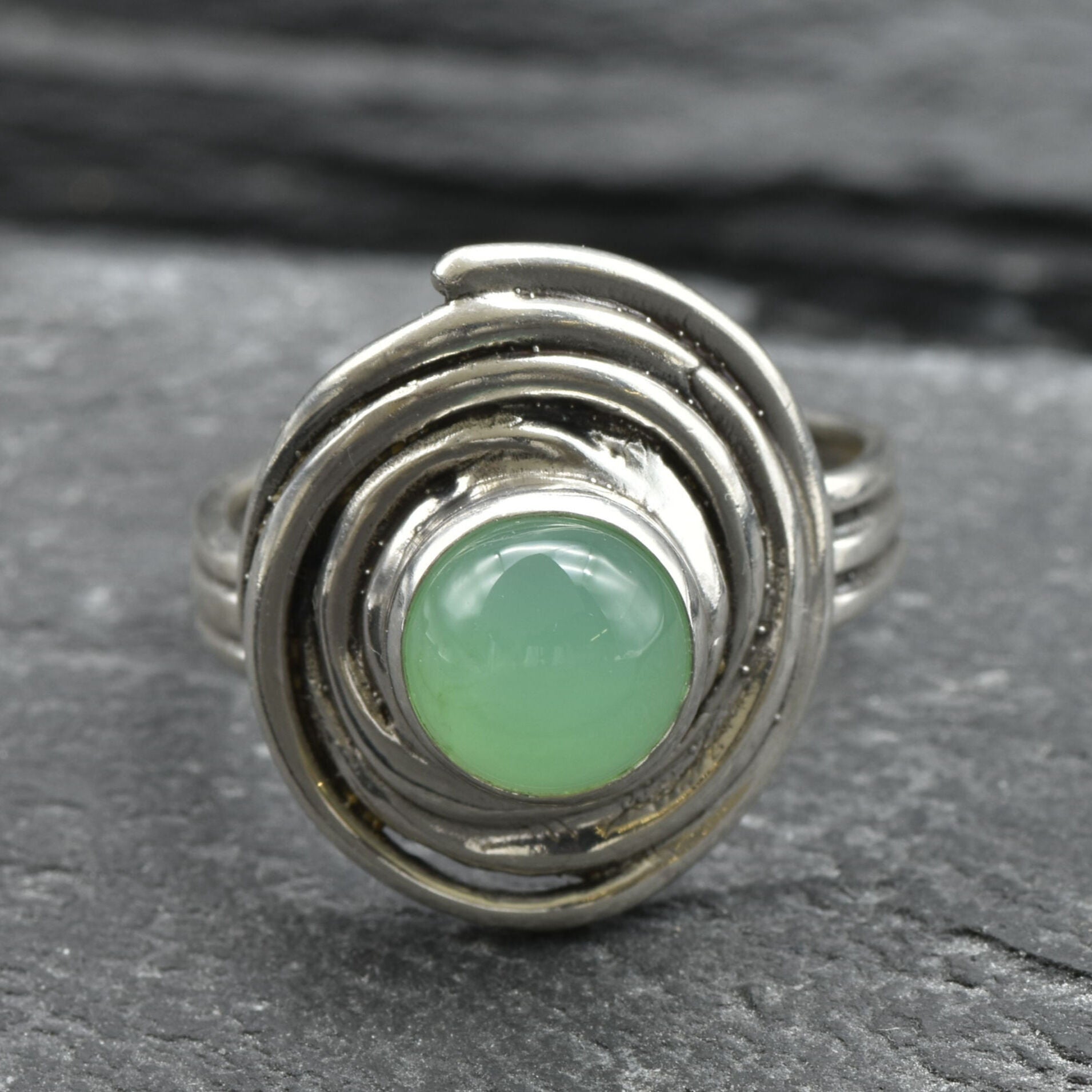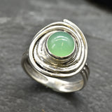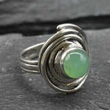 Green Spiral Ring - Natural Chrysoprase Ring, Green Swirl Ring