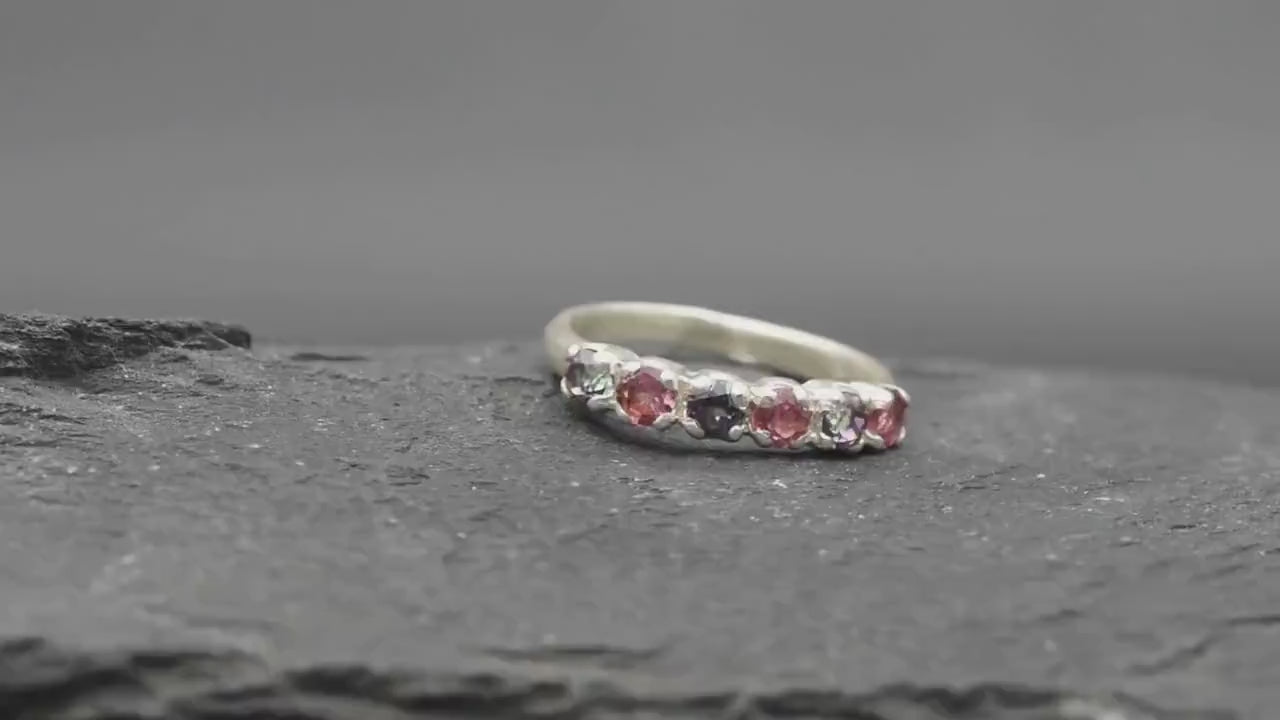 Half Eternity Ring, Promise Ring, Dainty Ring, Pink Tourmaline Ring, Mystic Topaz Ring, Half Eternity Band, Genuine Topaz, Solid Silver Ring (262722392)