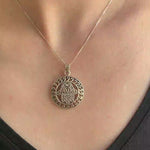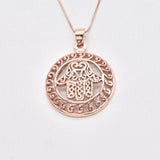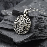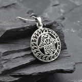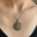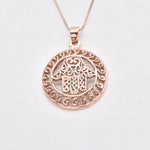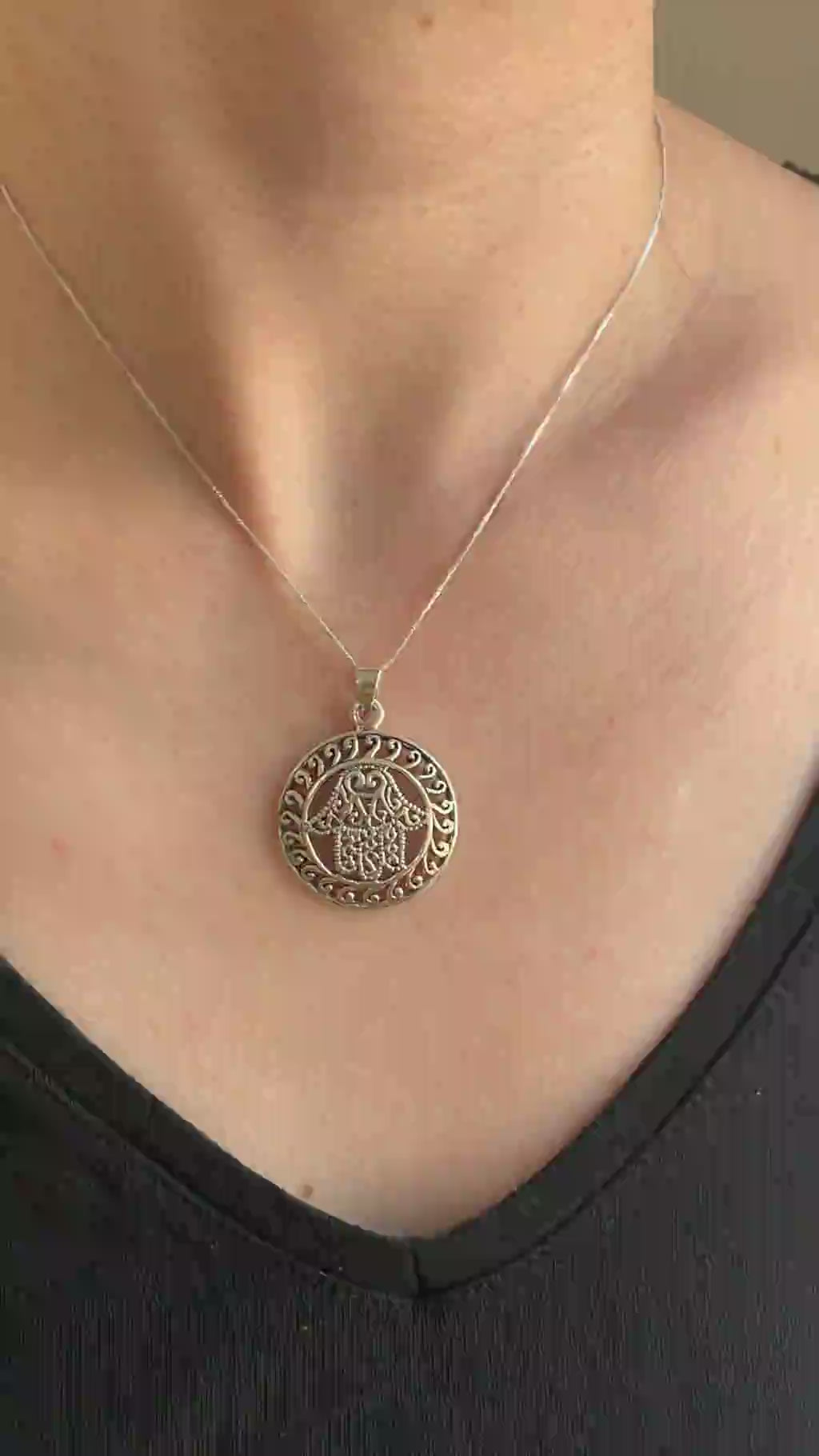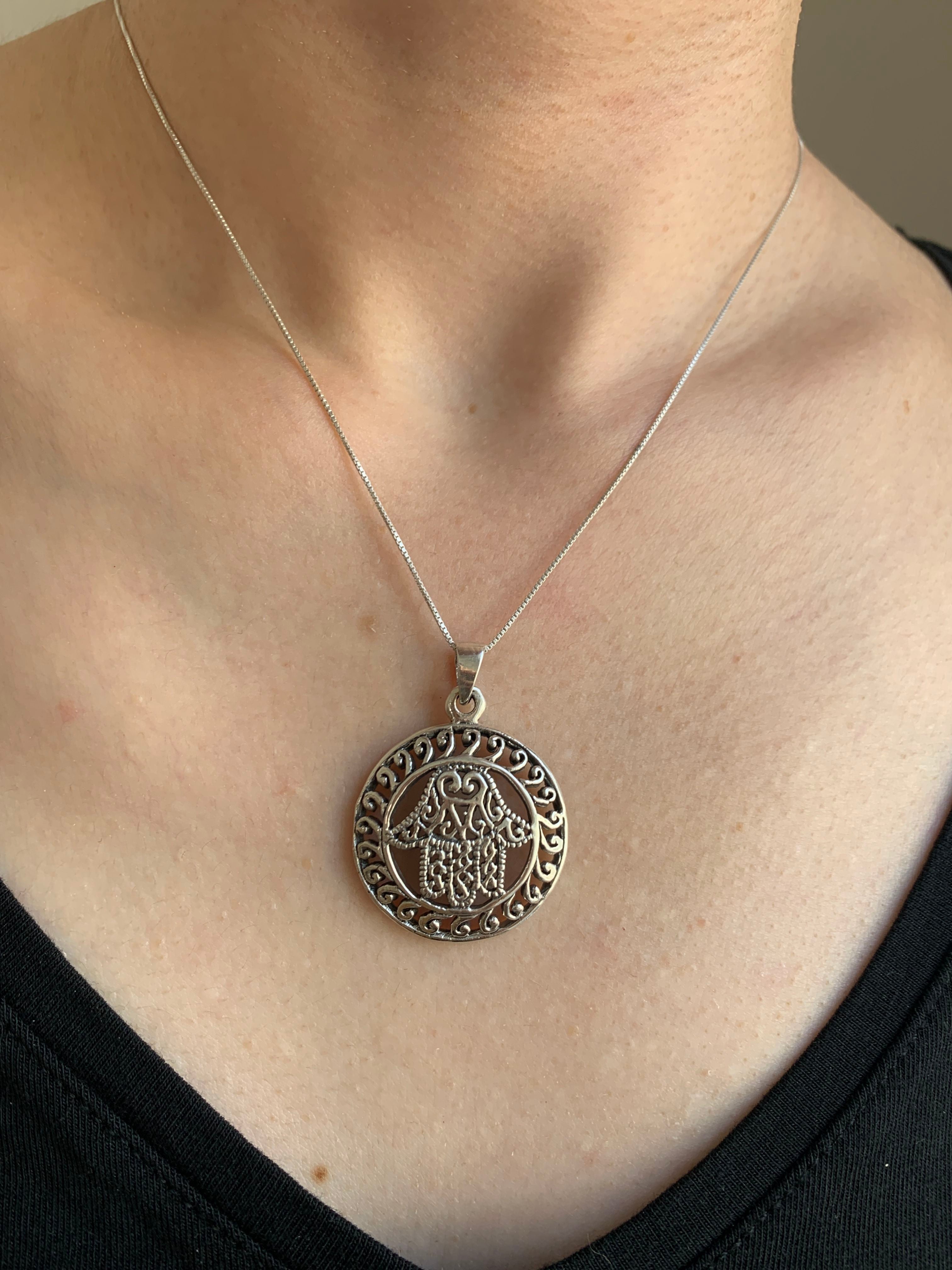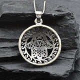 Hamsa Hand Pendant - Large Round Necklace - Silver Statement Necklace