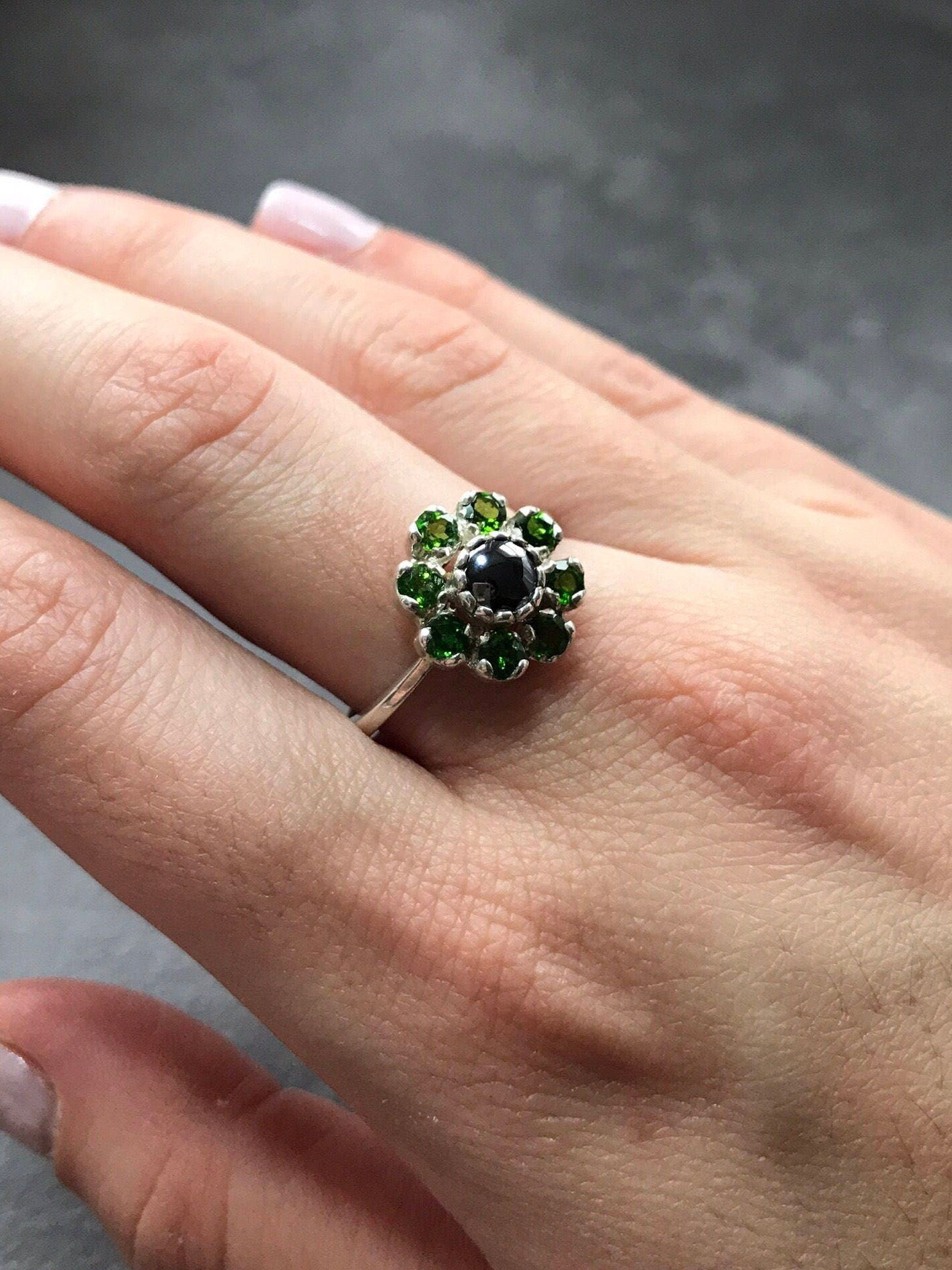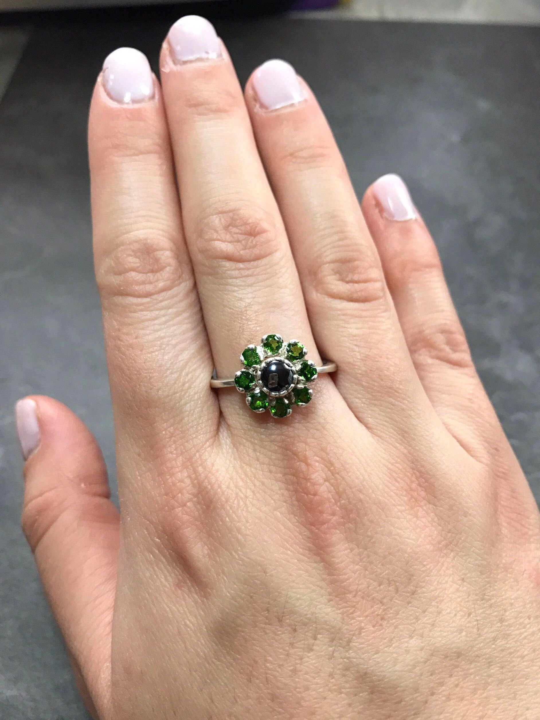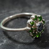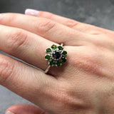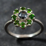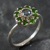 Green Blue Flower Ring - Natural Hematite Ring - Natural Chrome Diopside Ring