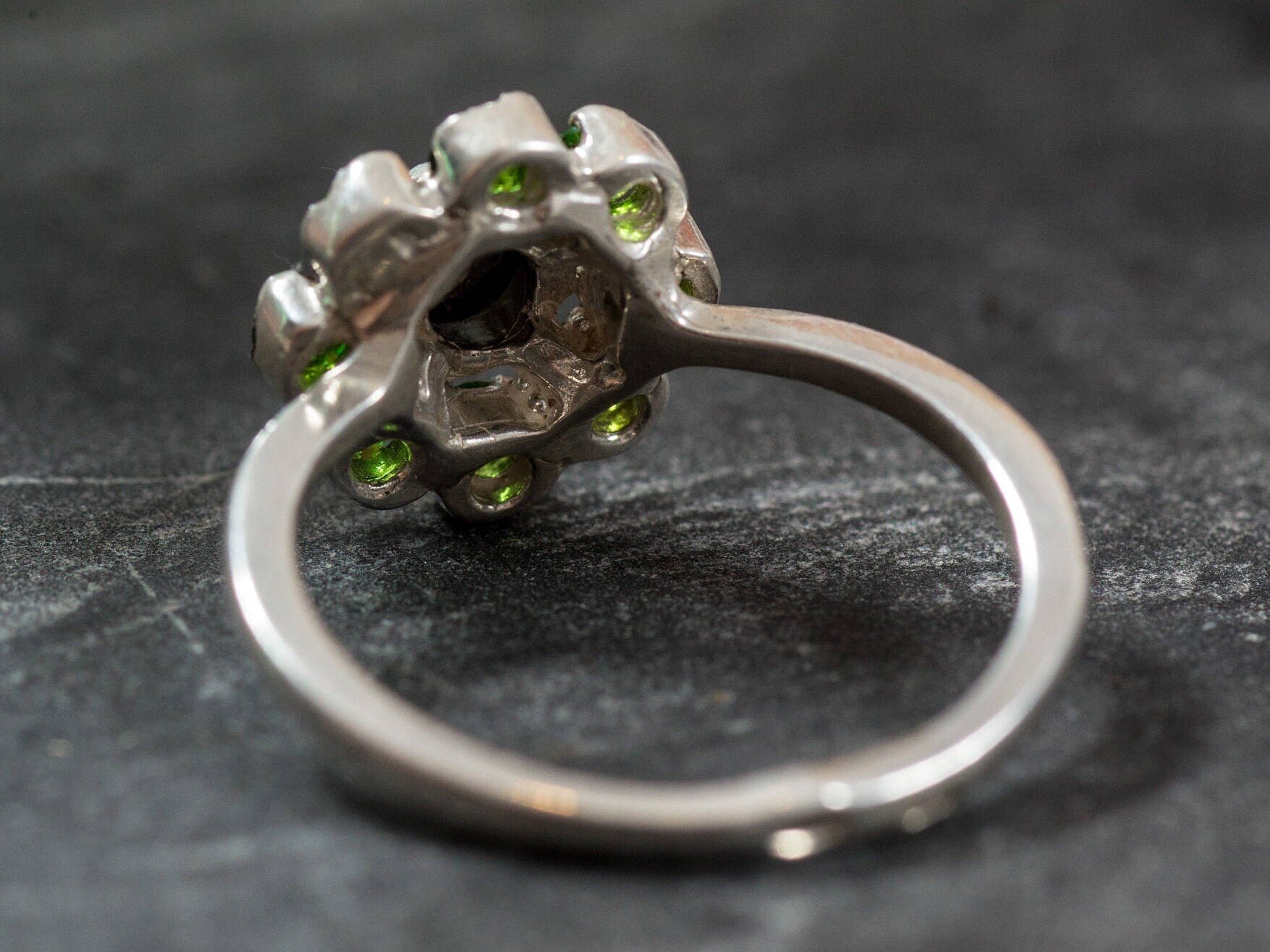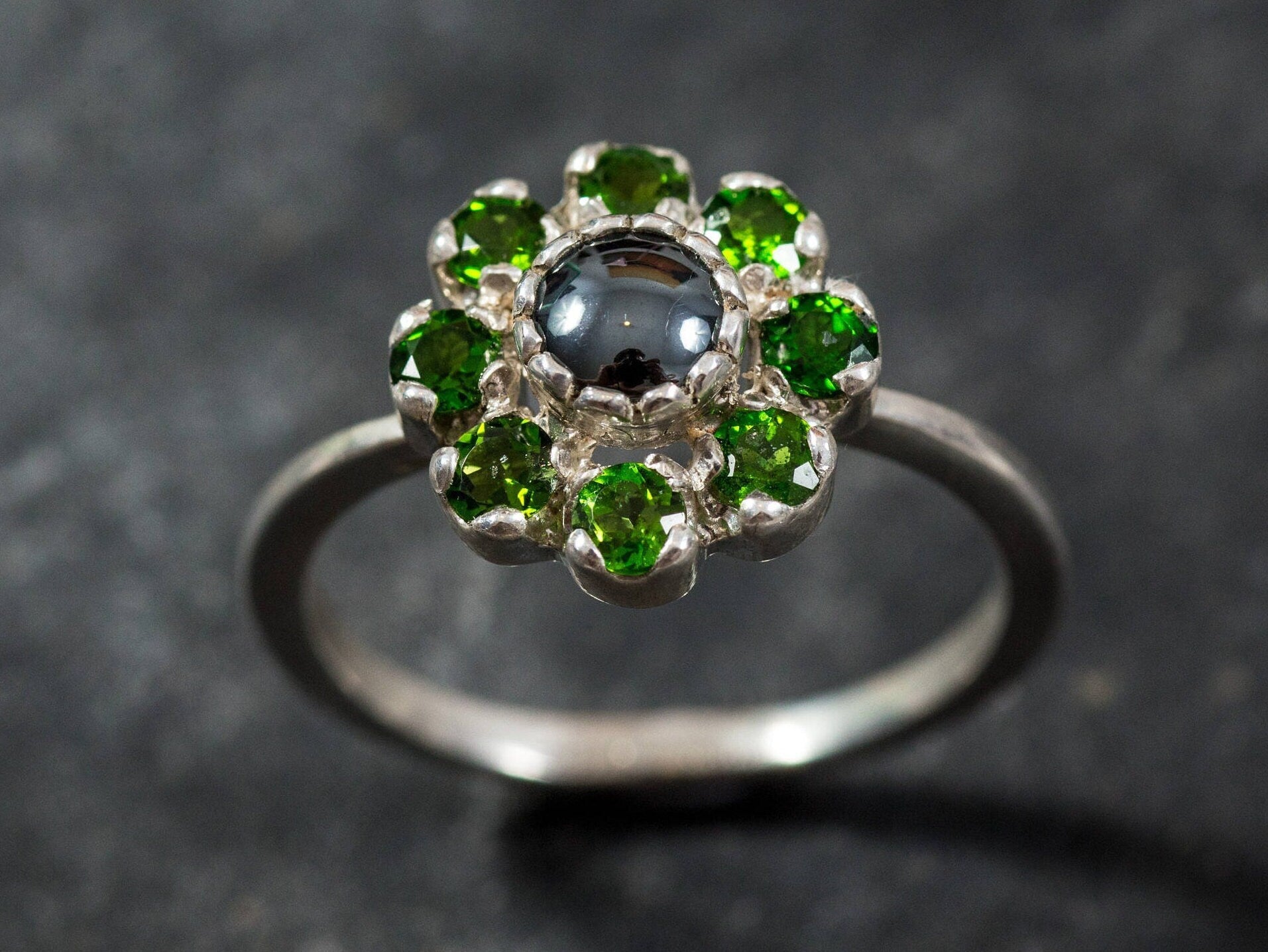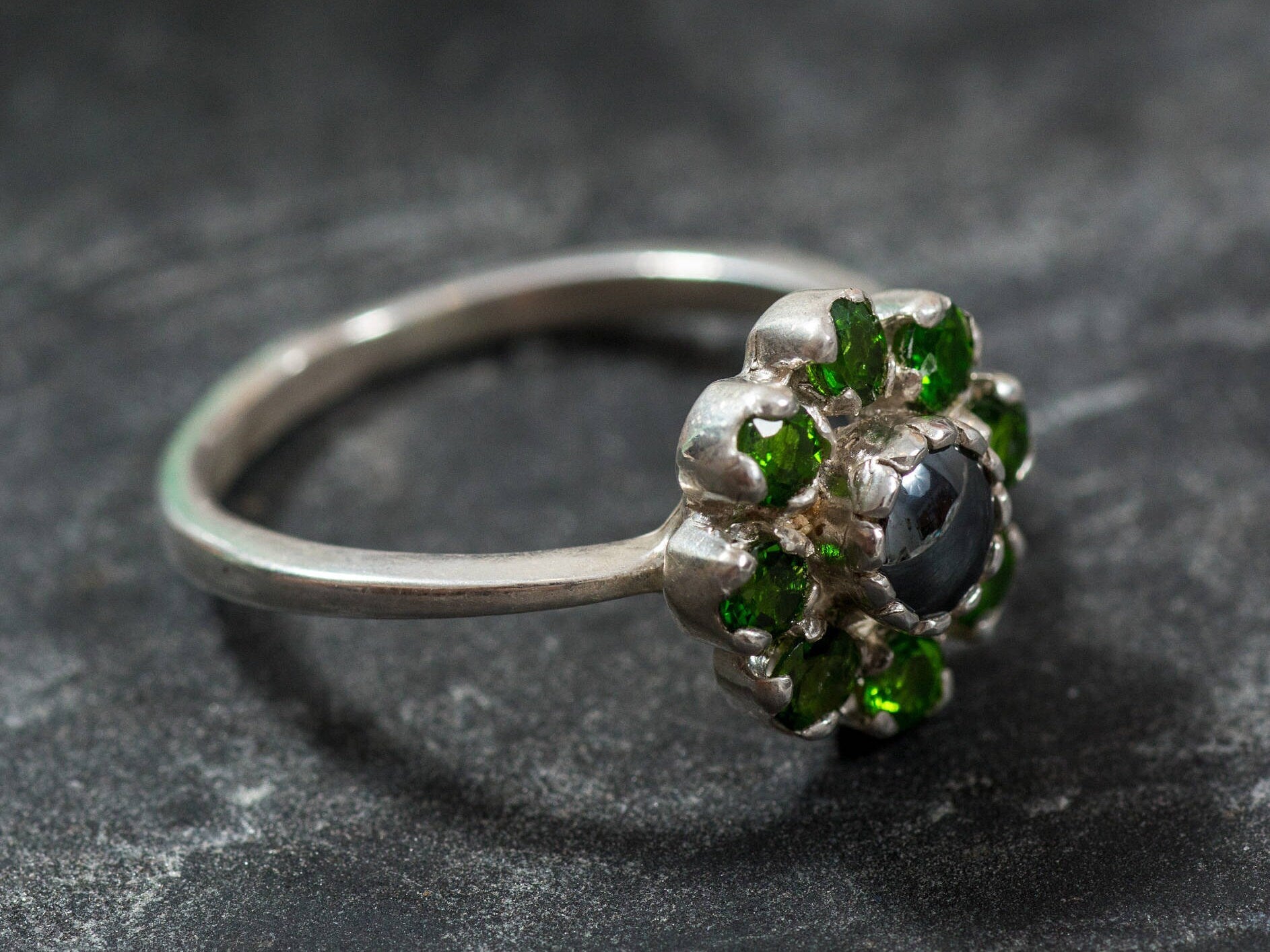 Hematite Ring, Chrome Diopside Ring, Natural Stones, Emerald Green Ring, Emerald Green Stones, Chrome Diopside, Hematite, Vintage Ring