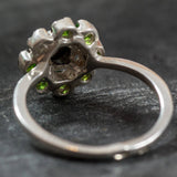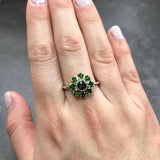 Green Blue Flower Ring set with Natural Hematite at 5mm each & Natural Chrome Diopside at 3mm each from Baltic Sea (1.6 Ct all).
