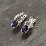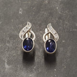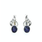 Iolite Earrings set with a Natural Iolite in a top grade, diamond cut & deep violet/blue color, at 8x6mm each (4 Cts a pair) from Burma with small CZ Diamonds.